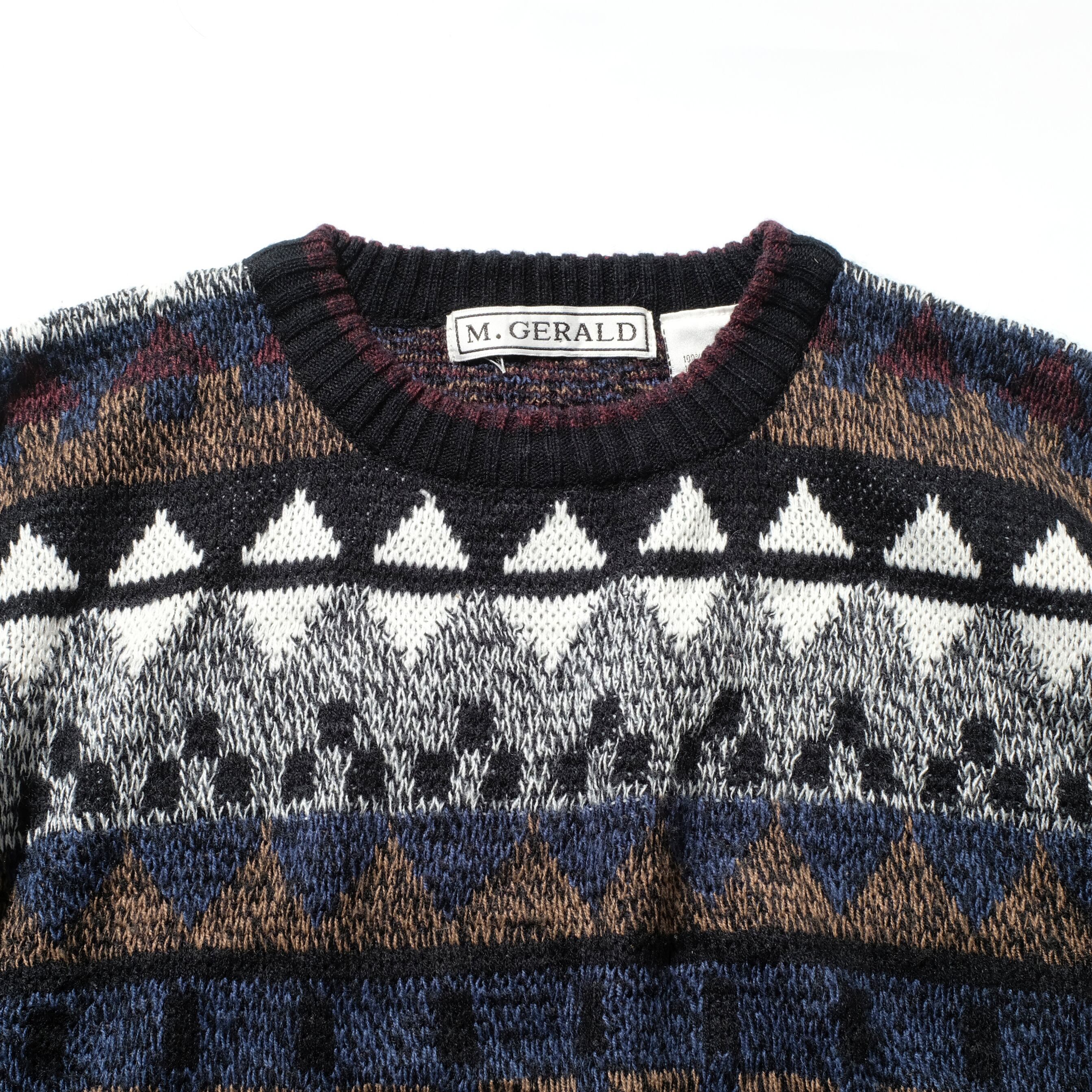 90年代の古着らしく、一枚でもサマになり、インナーとしても他を引き立てる絶妙の配色。気軽にきていただけるニットとしておすすめできる一着です。