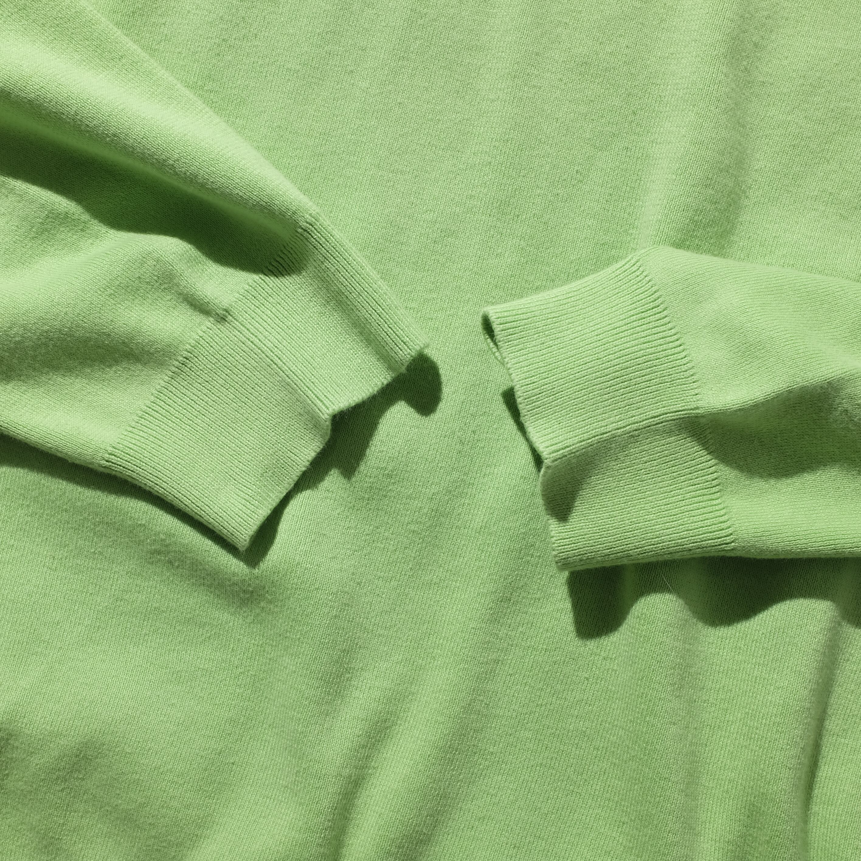 なかでもこちらは珍しいライムグリーンのカラー。個人的には男性はもちろん、女性にもおすすめしたい色目だなと感じました。一枚で着ていただくのにはもちろん、インナーとしても夏以外の3シーズン活躍する点もポイントでしょうか。