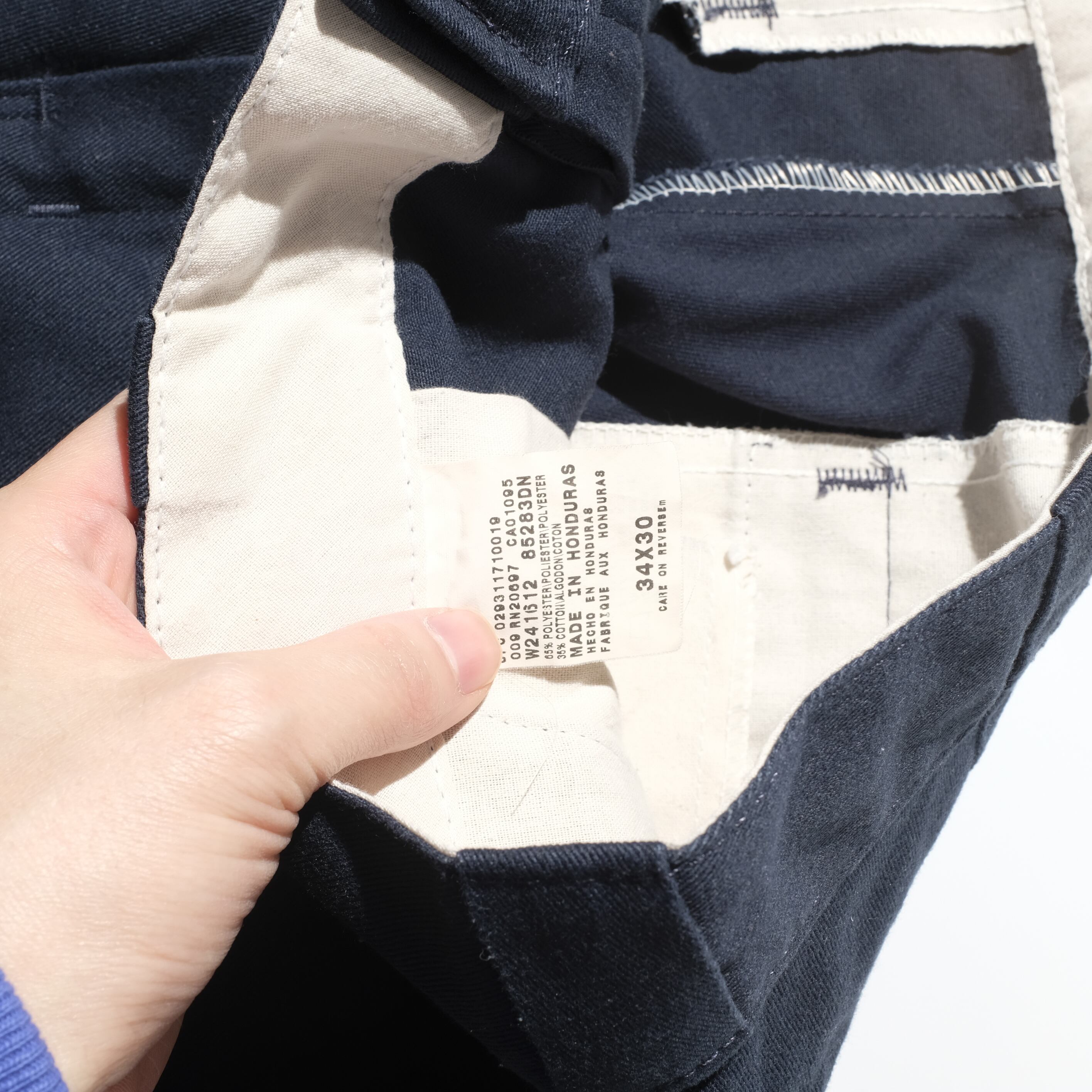 ネイビーの色目に太めのシルエットのこちらのパンツ。定番の874などに比べワーク感のあるアイテムですので、シャツなどギャップのあるものを合わせていただくのも良さそうですね。