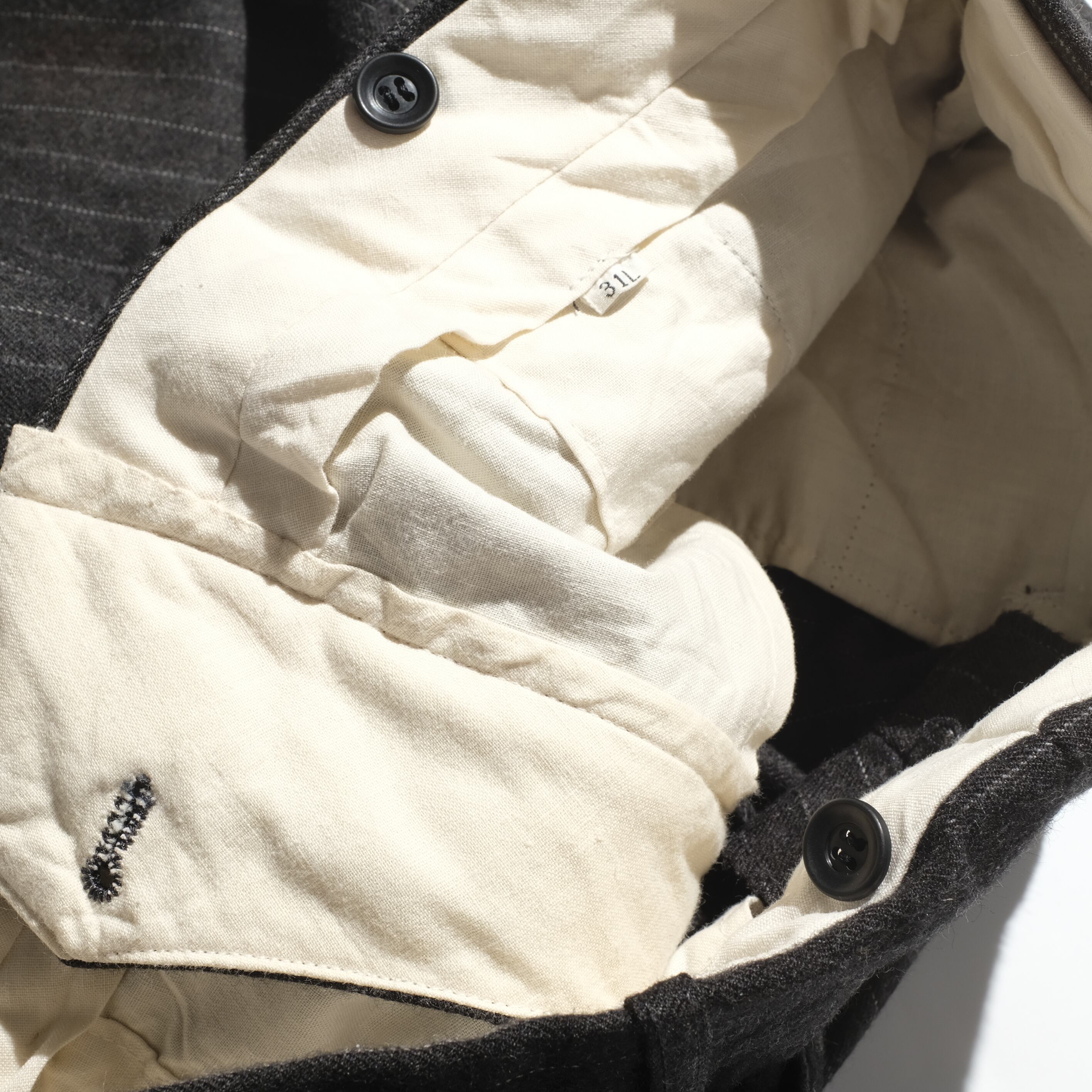 2タックの入るデザインにストライプ柄、そして厚手のウール素材が古着ならではの上質な一本。