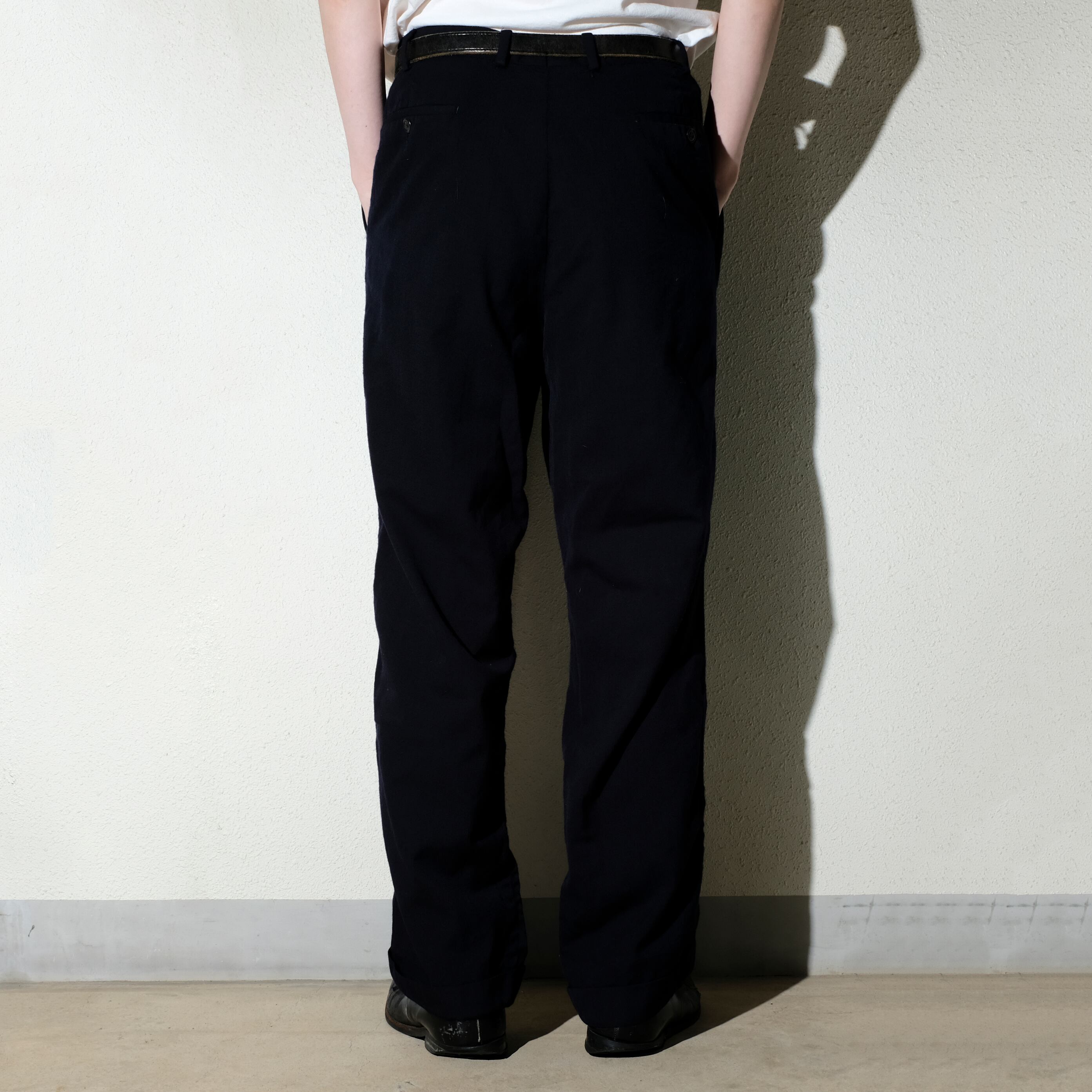当店である程度整えましたが、経年、湿気などによる若干のウールの縮みがございました(裾部の画像のインシームブなどがわかりやすいかと思います)のでこちらのプライスでのご案内になります。ご検討ください。
