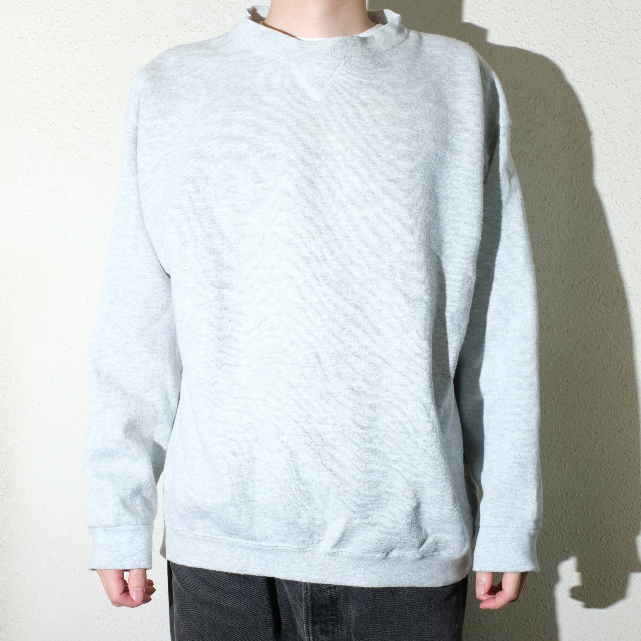 貴重なUSA製の一枚。チャンピオンのリバースウィーブが高騰しきったなか、やはり注目するべきがこのUSA製のスウェットたち。こちらはその中でもスタンダードなグレーのカラーにLサイズのゆったり着ていただけるサイズ感が魅力的な一枚。着用感の見られるコンディションではありますが、一枚でもインナーとしてもやはり使えるこのカラー。