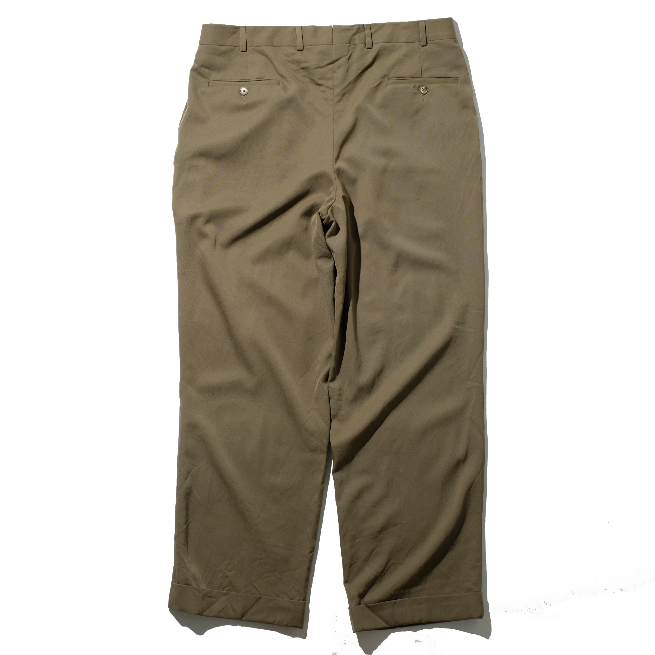 90'sごろ、USA製の希少な個体。2タックに裾ダブルの人気の高い仕様。色目も暗いオリーブのカラーとこれからの季節に重宝していただけそうです。