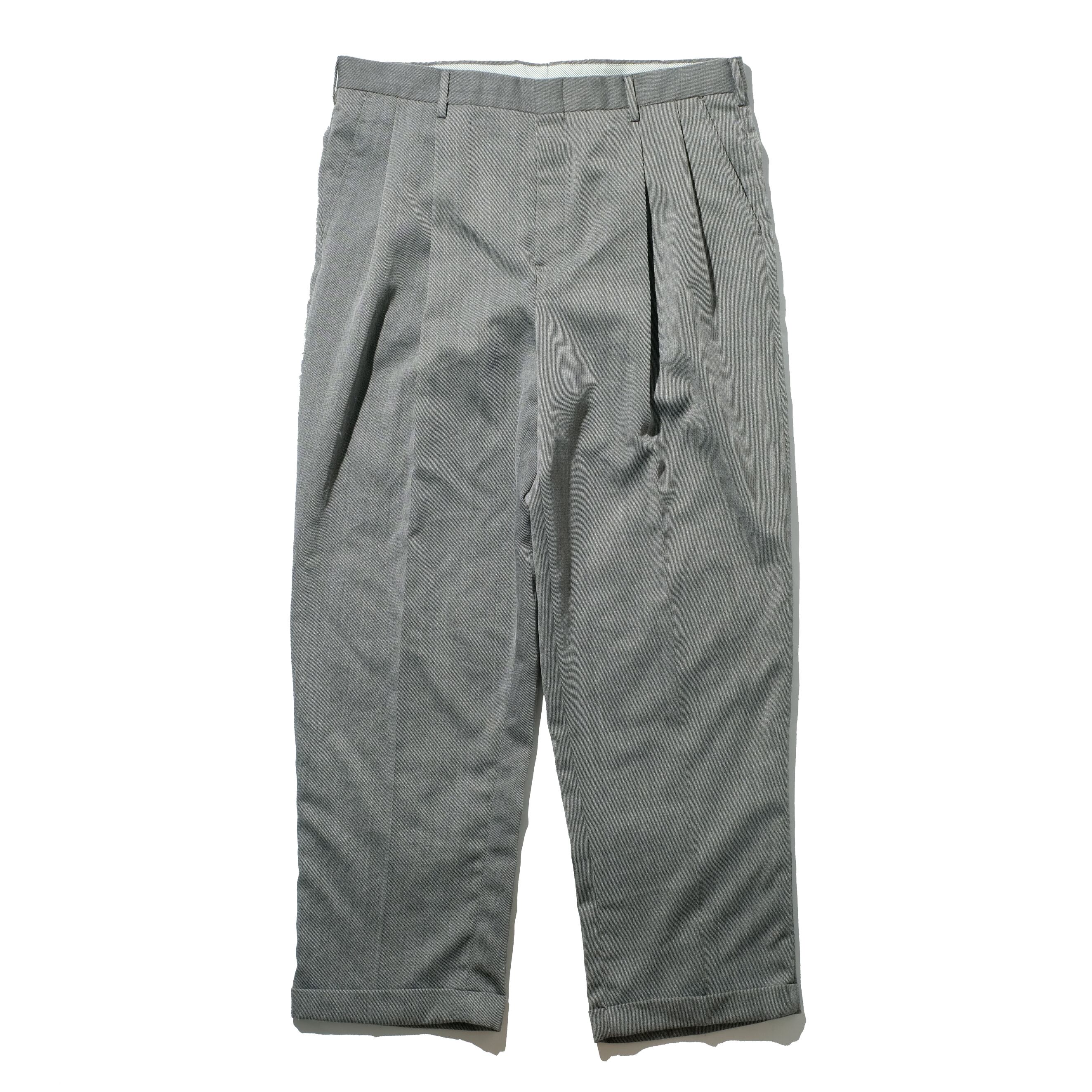 ウール/ポリ混紡の丈夫そうな生地感、太めのシルエットが魅力的な一本。ロケットタロンジップのつく、80'sごろのものになります。