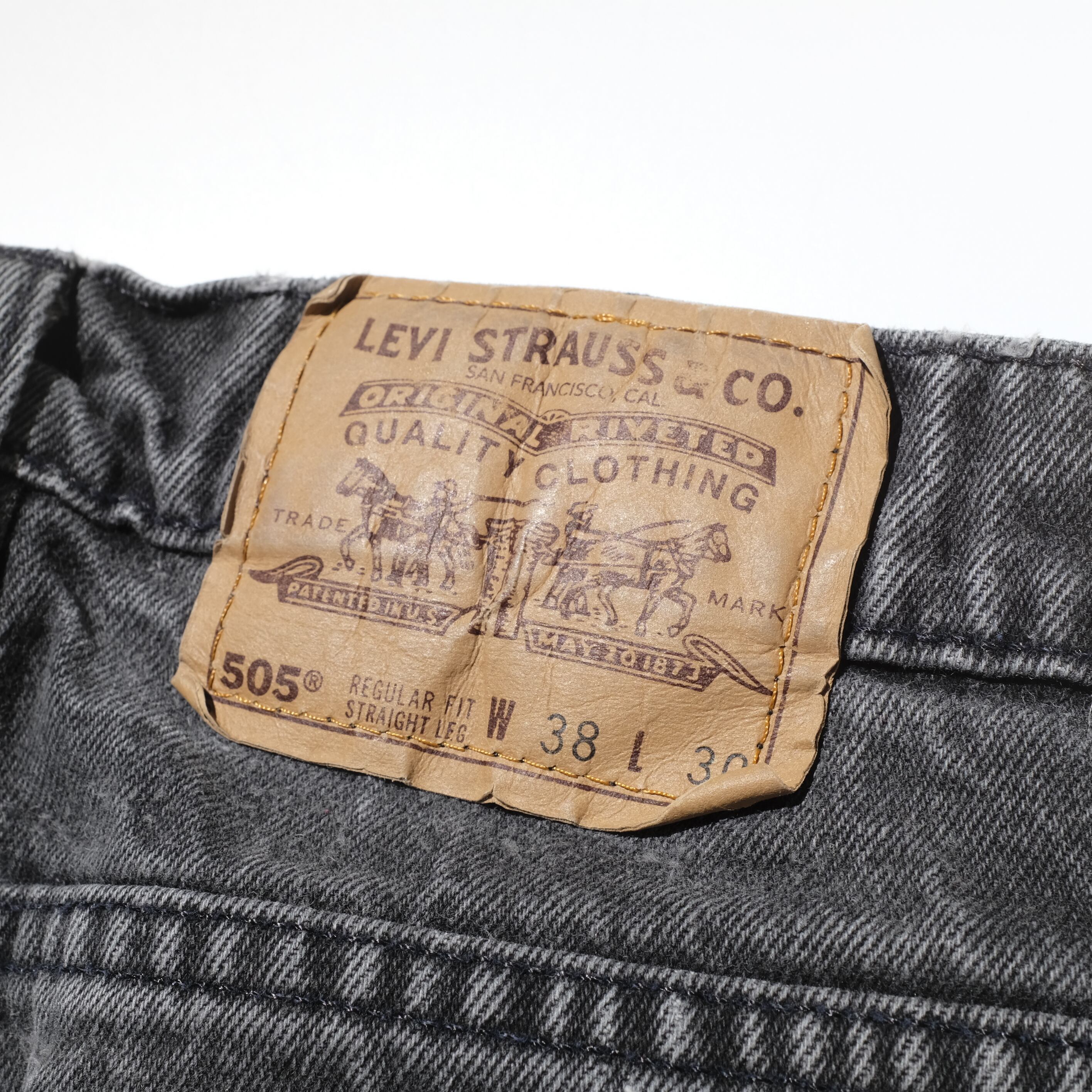ところどころスレ、フェードのある穿きこまれたコンディションがかなり魅力的な一本。さらにウエストを絞って穿かれる方の多い505のなかでも、38×30という稀有な表記サイズです。