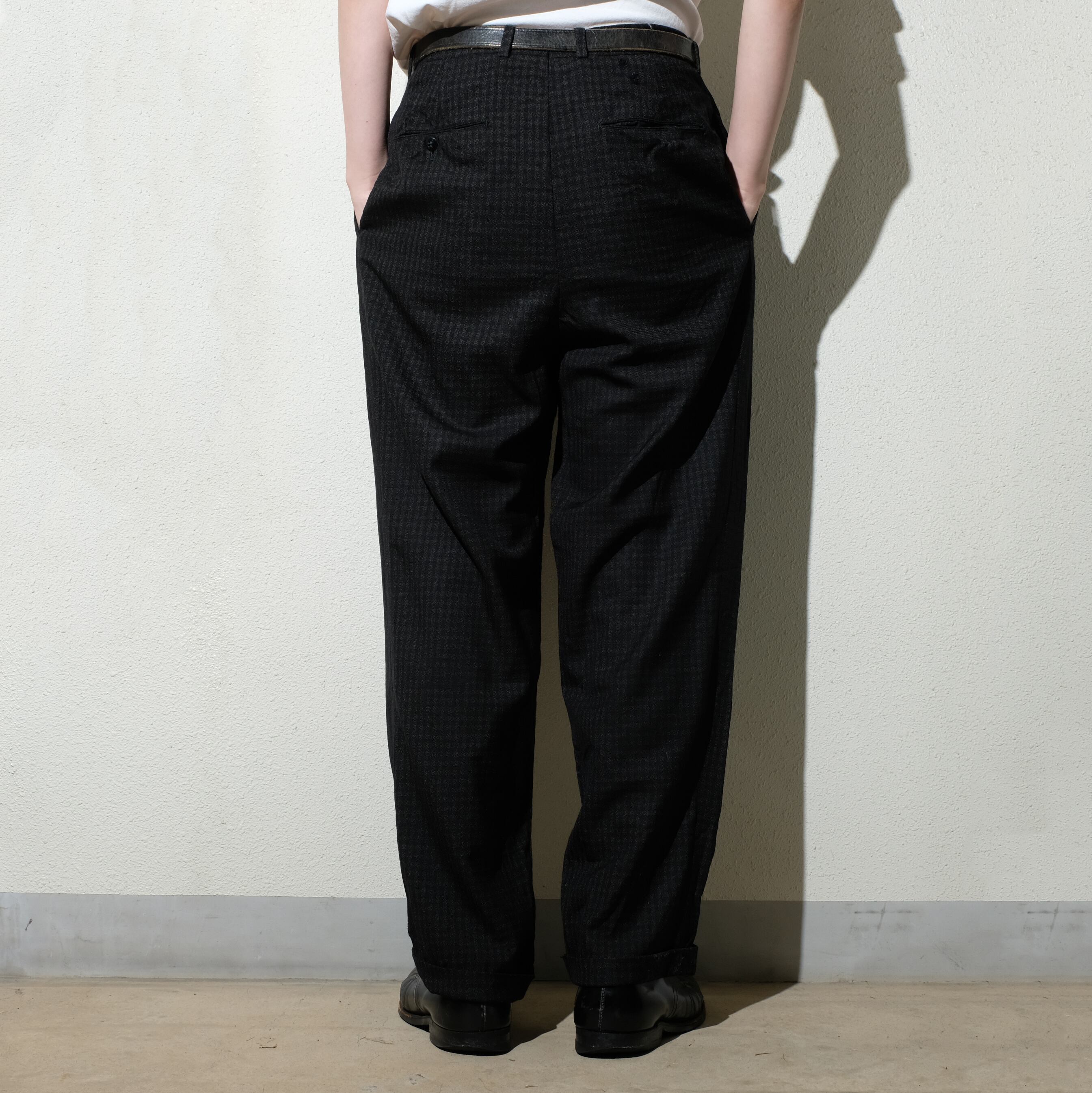2タックに控えめなチェック柄の入る、ヴィンテージらしい一本。この年代ならではの質の高い生地、そして経年してきた雰囲気など現行のものや近年のものと比べますと明らかに違ってきます。
