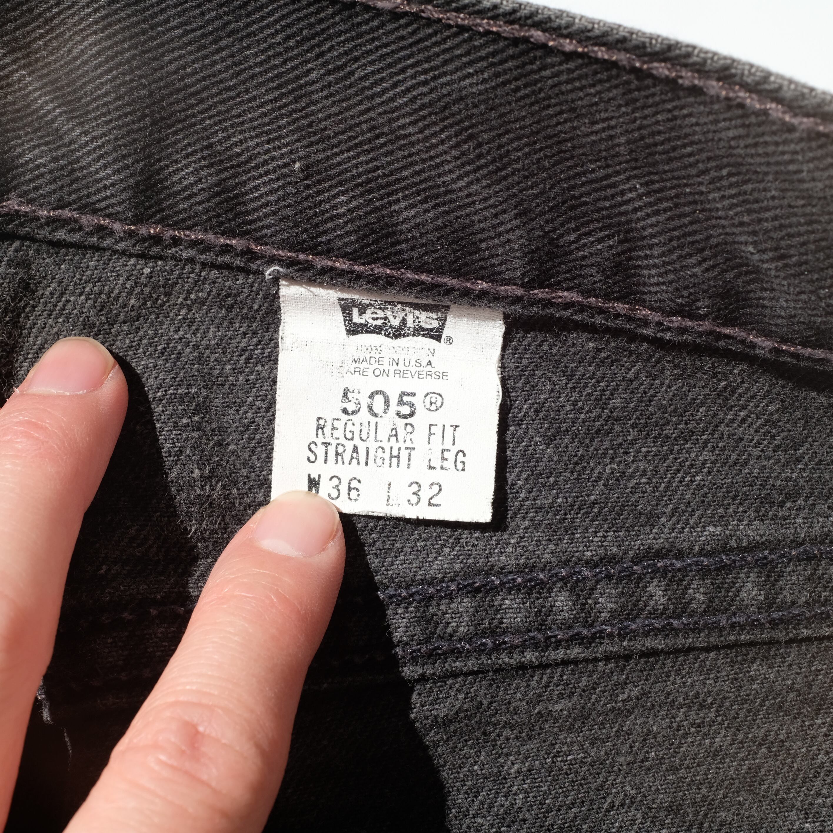 もはや言わずと知れた、505ブラック。メキシコ製やコロンビア製などであってもなかなか見つけることのできないアイテムとなりましたが、こちらはしっかりとUSA製の一本。36×32からレングスのみ若干チヂミの入った個体。サイズバランスも抜群と言えるでしょう。また目立つダメージもなく、フェードも少ない完璧な一本です。