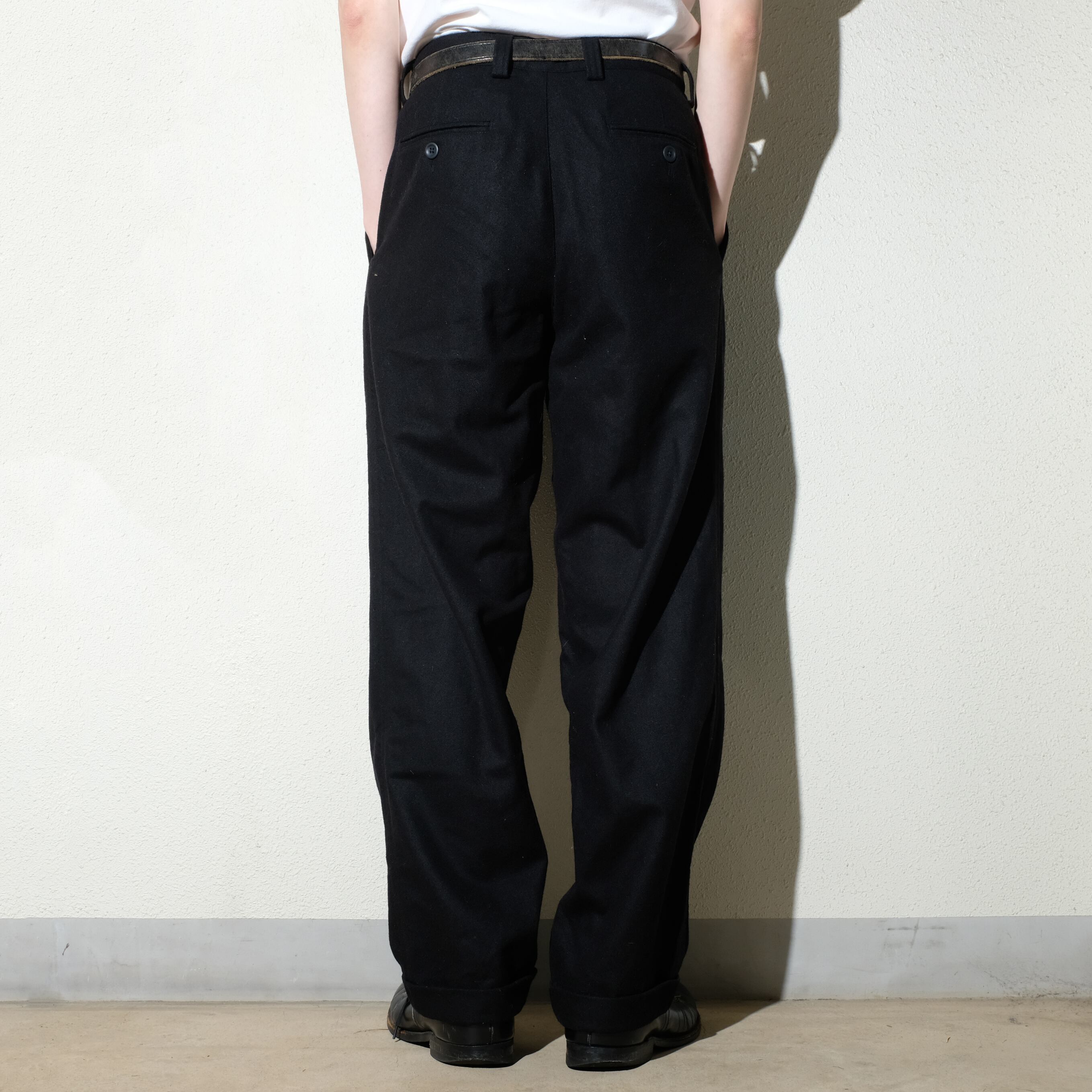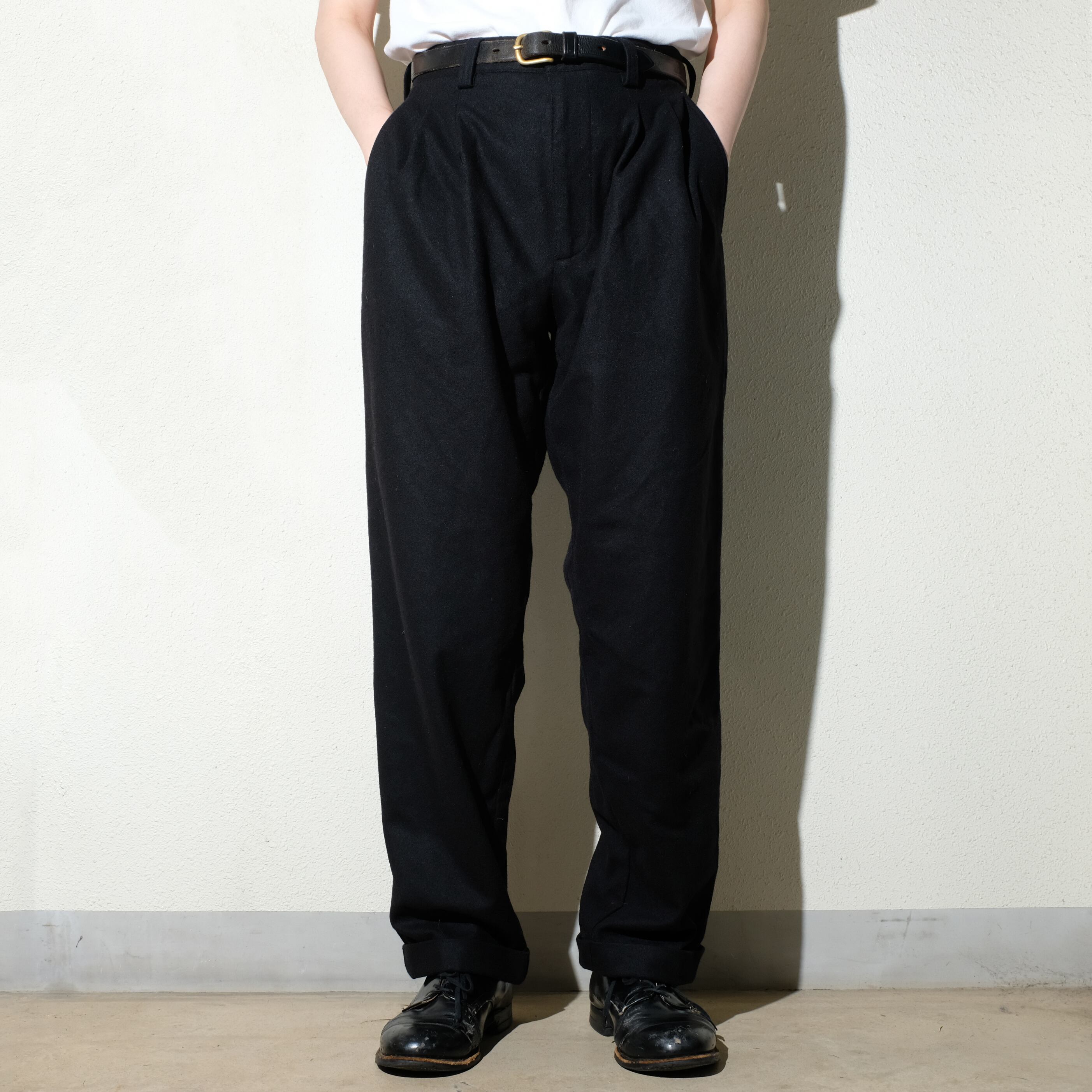 ウールと化繊の混紡の厚手の生地に2タックの入るデザインが魅力的な一本。