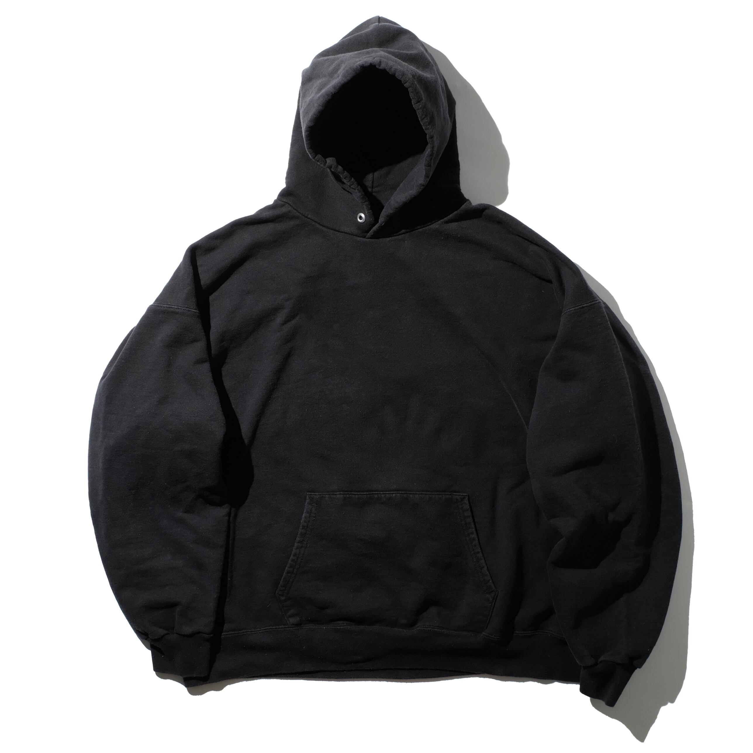 90%コットンのがしっとした質感が魅力的な一枚。9.7ozの厚手ですので、気になるフード部分もしっかりとしており、インナーとしても重宝していただけそうです。