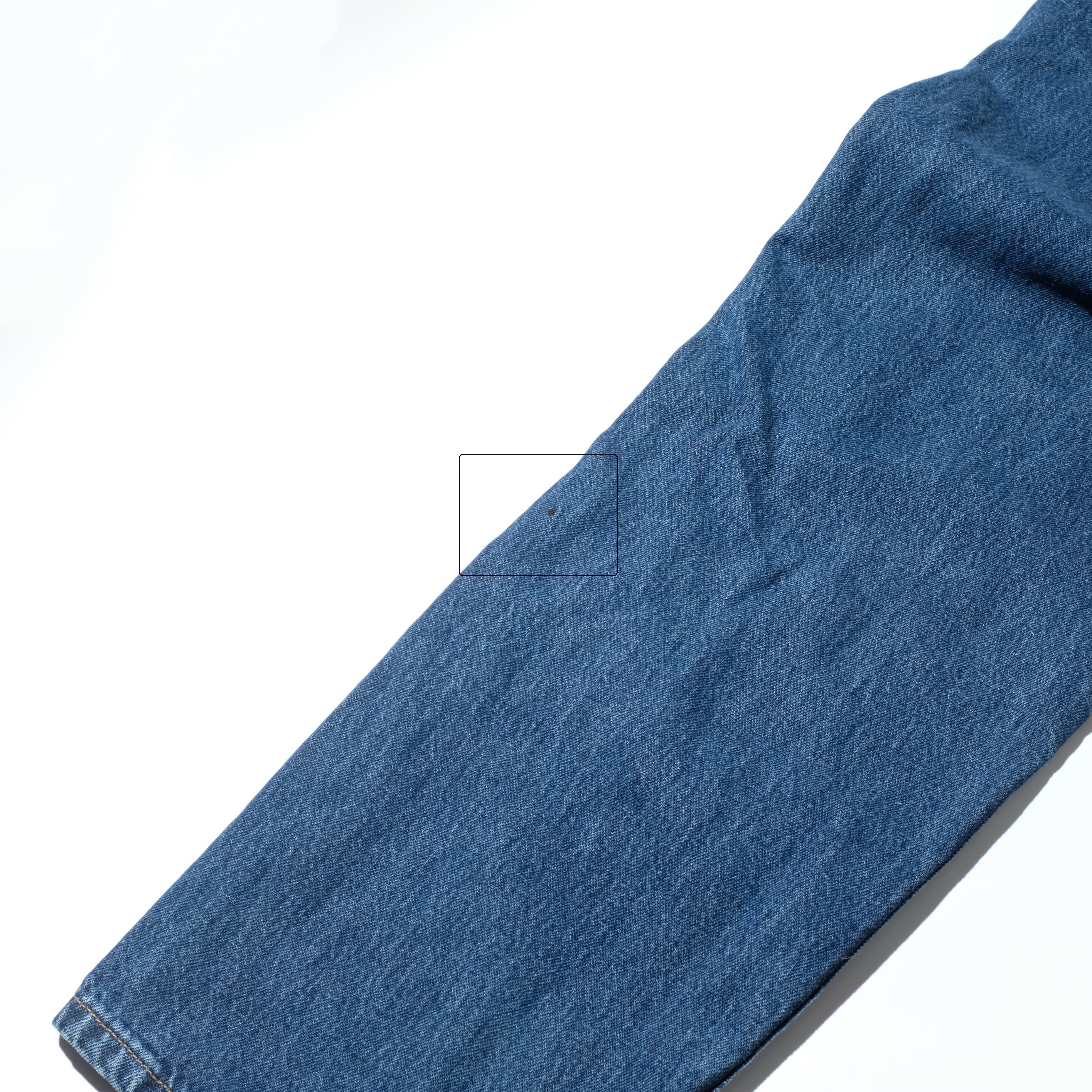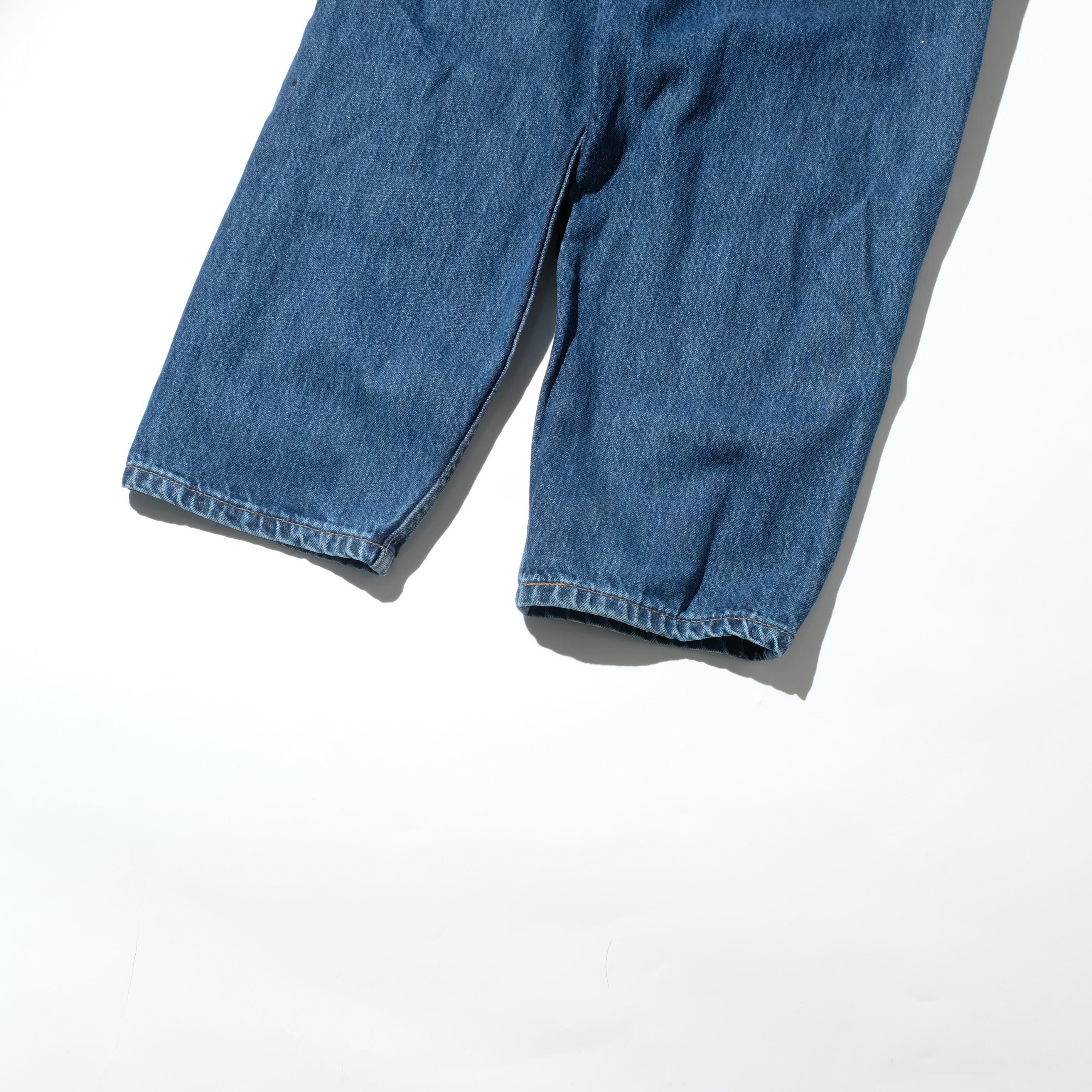 全体的にウォッシュのかかったブルーの色目、そして特有のバギーシルエットが今のファッションにぴったりな一本。色落ちを楽しむ、というよりはどちらかというとアイスブルーでないインディゴブルーの色目のデニムとして合わせていただけます。