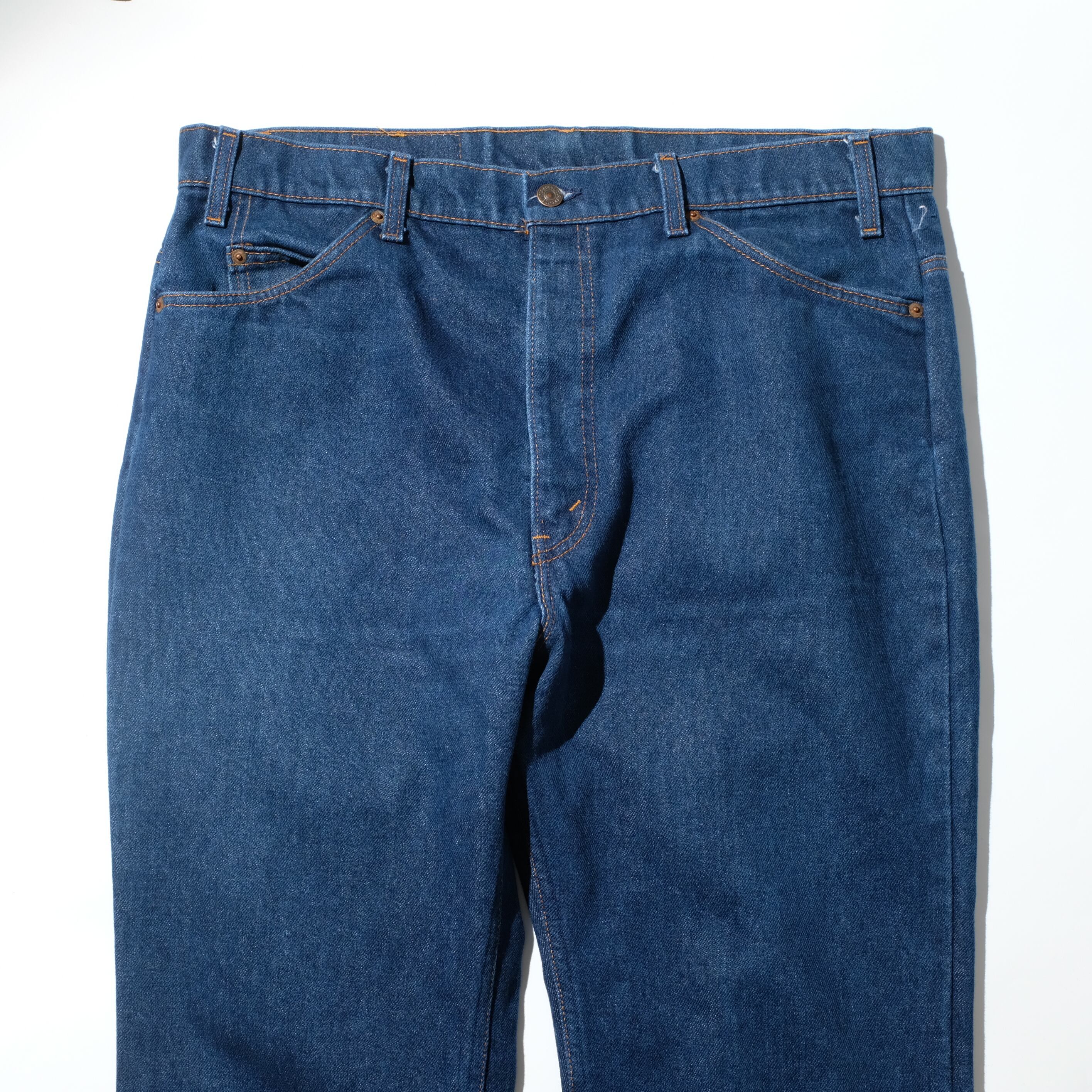 ポリエステル混紡のやや伸縮する生地を使用した一本。501でいうところの赤耳やインサイドシングルなどと同じ年代、まだまだ濃く残るインディゴの色味に80'sらしいオールドの青さを感じます。