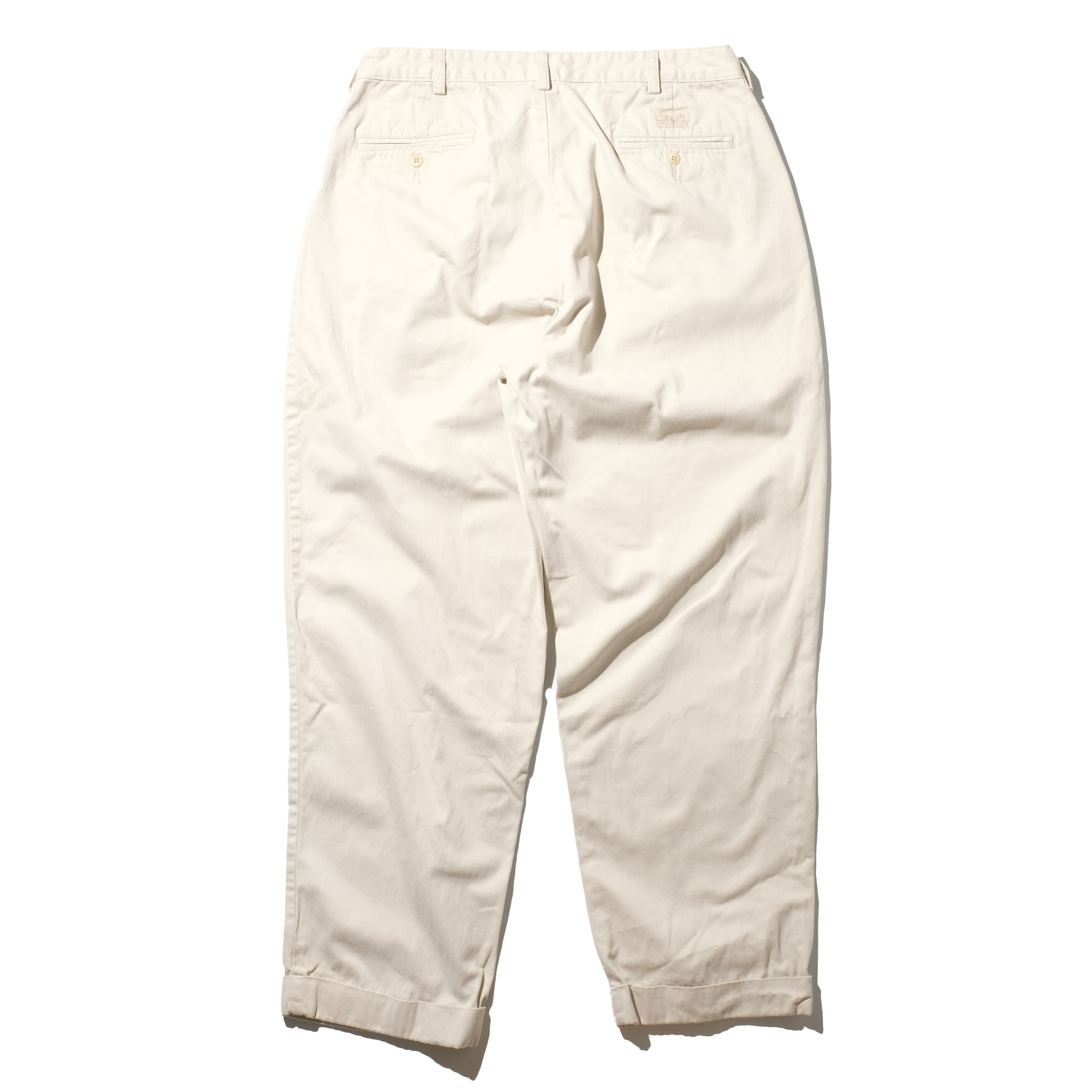 オフホワイトの2タックチノはファッション的に重宝するところですが、カーキなどに比べ個体数が少ないです。