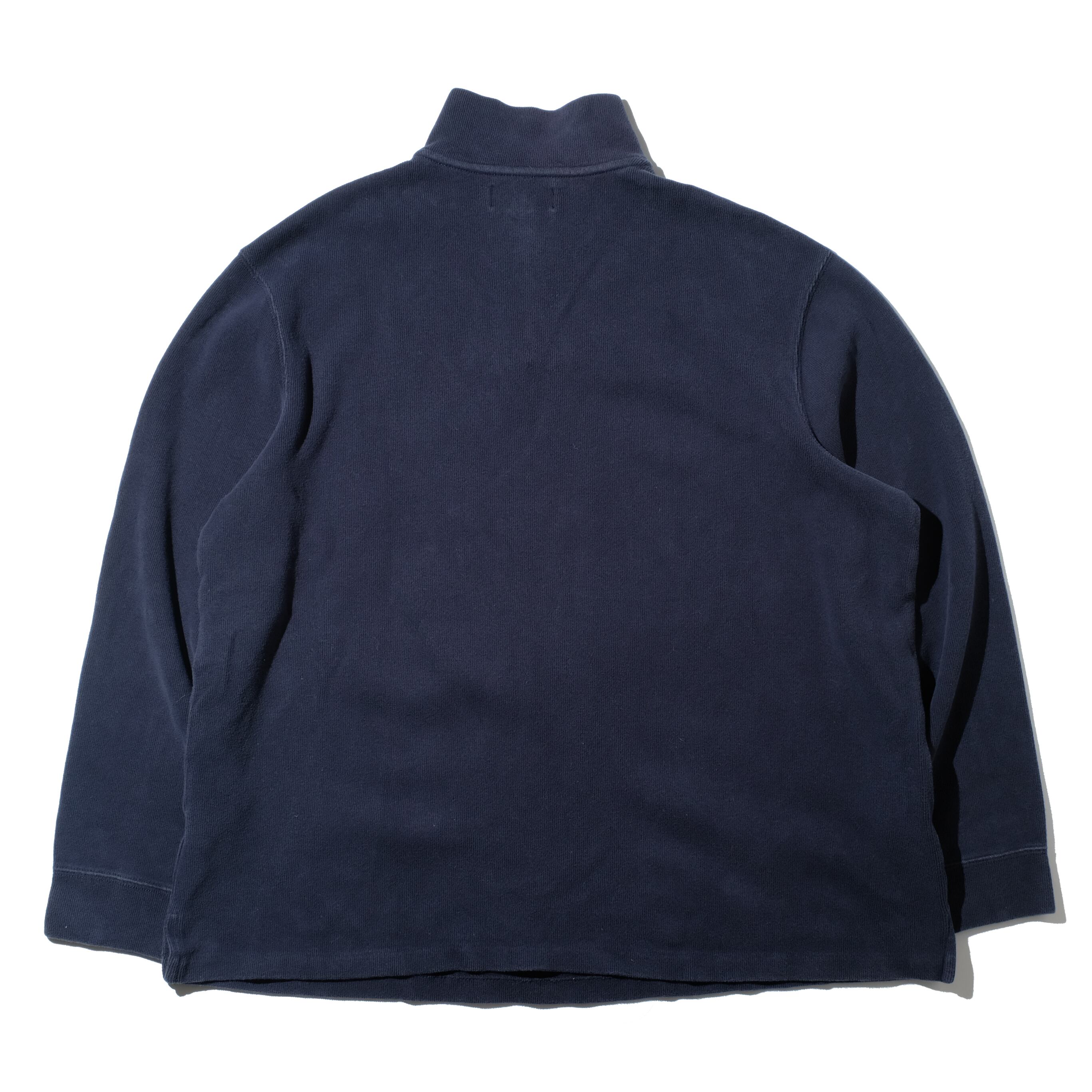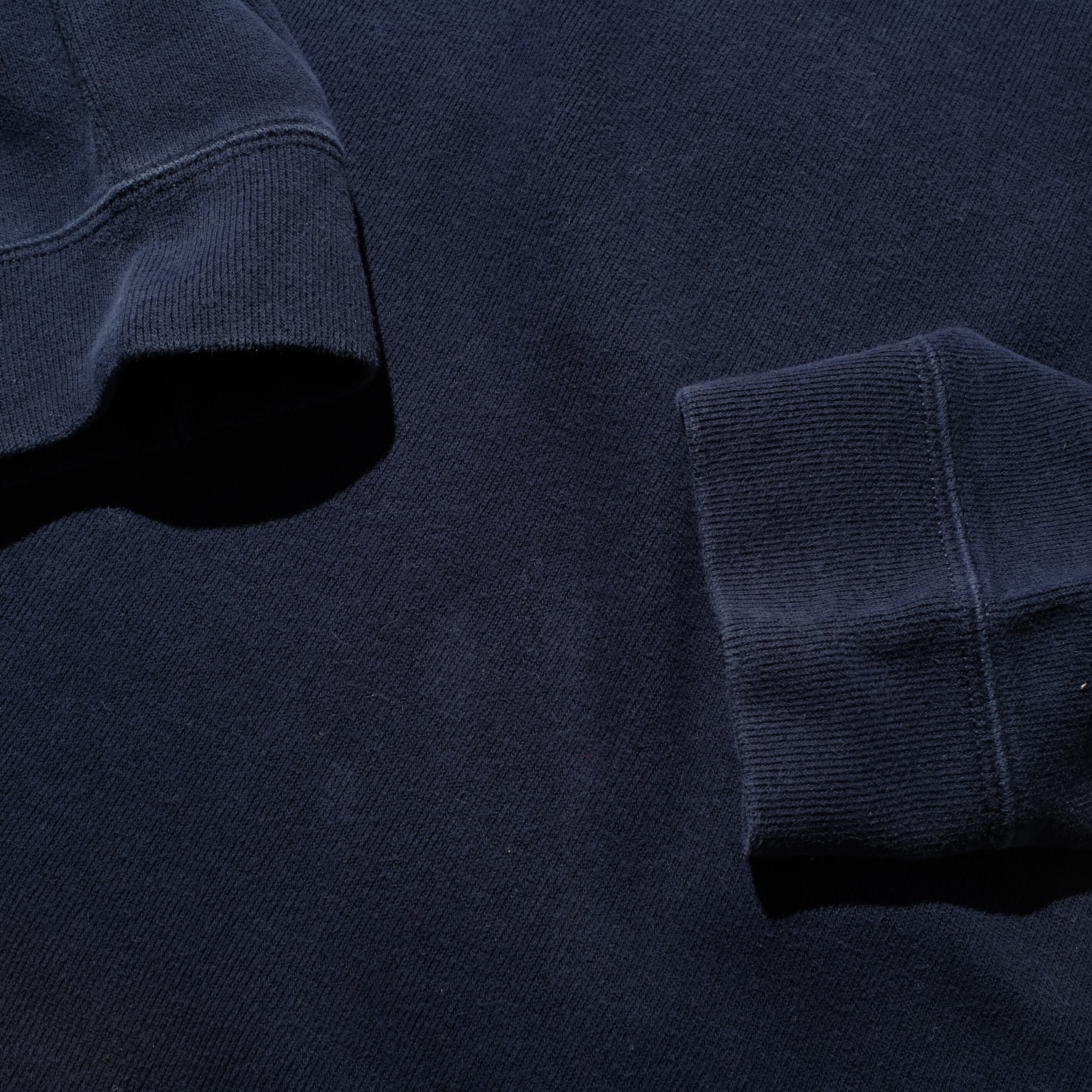 ネイビーの大人っぽい上品な色目にニット感のあるスウェット生地。XXLのサイズ表記ですが着丈は71cmとそこまで長くなく、身幅がしっかりと取られた丸っこい良いサイズ感です。
