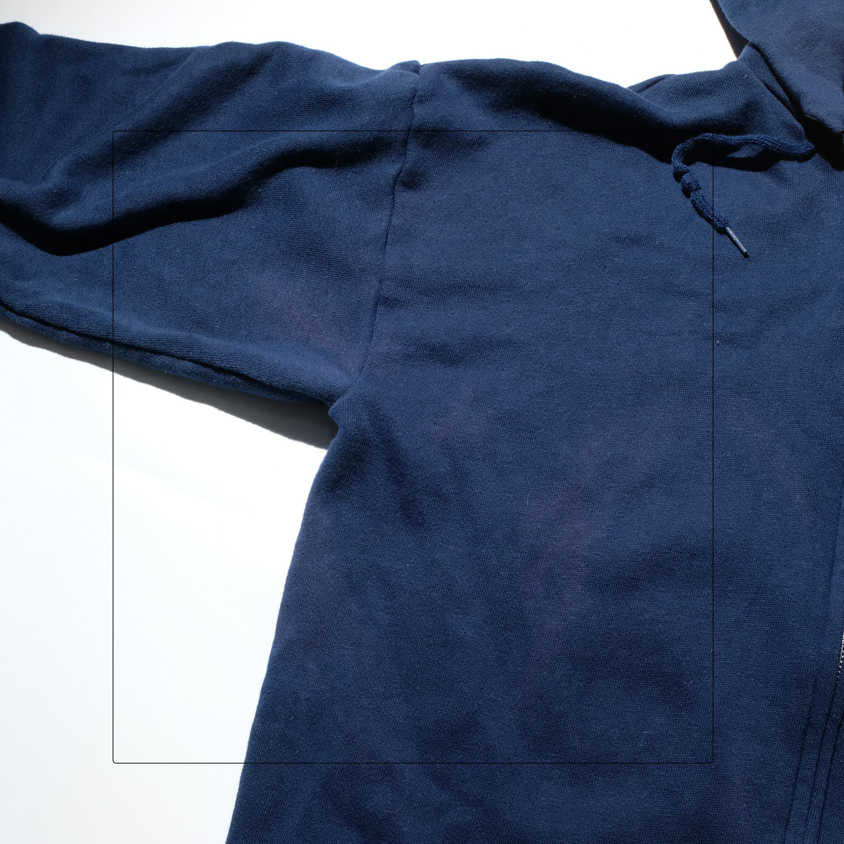 ブランドも信頼のTultexですし、カラーもブルー、そしてサイズはXLと非常に合わせていただきやすい一枚。現状、世の中のメインストリームはプルオーバータイプのフーディかと思いますので、そろそろジップアップのタイプも気になってきている方もいらっしゃるのでは無いでしょうか。全体的にヤケが見られますのでやや抑えたプライスですが、個人的にスウェットとしてはこのヤケの雰囲気はかっこいいのでは無いかと思っております。ぜひご検討ください。
