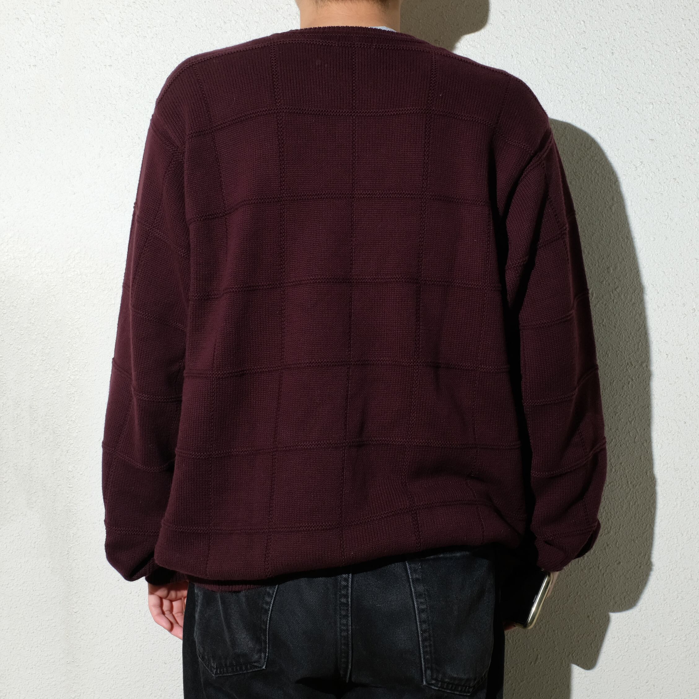 こちらは香港製の90'sの個体。バーガンディの落ち着いたカラーはお好きな方も多いのではないでしょうか。インナーとしても、もちろん一枚で着ても柄がほどよいアクセントになる一枚。ぜひご検討ください。