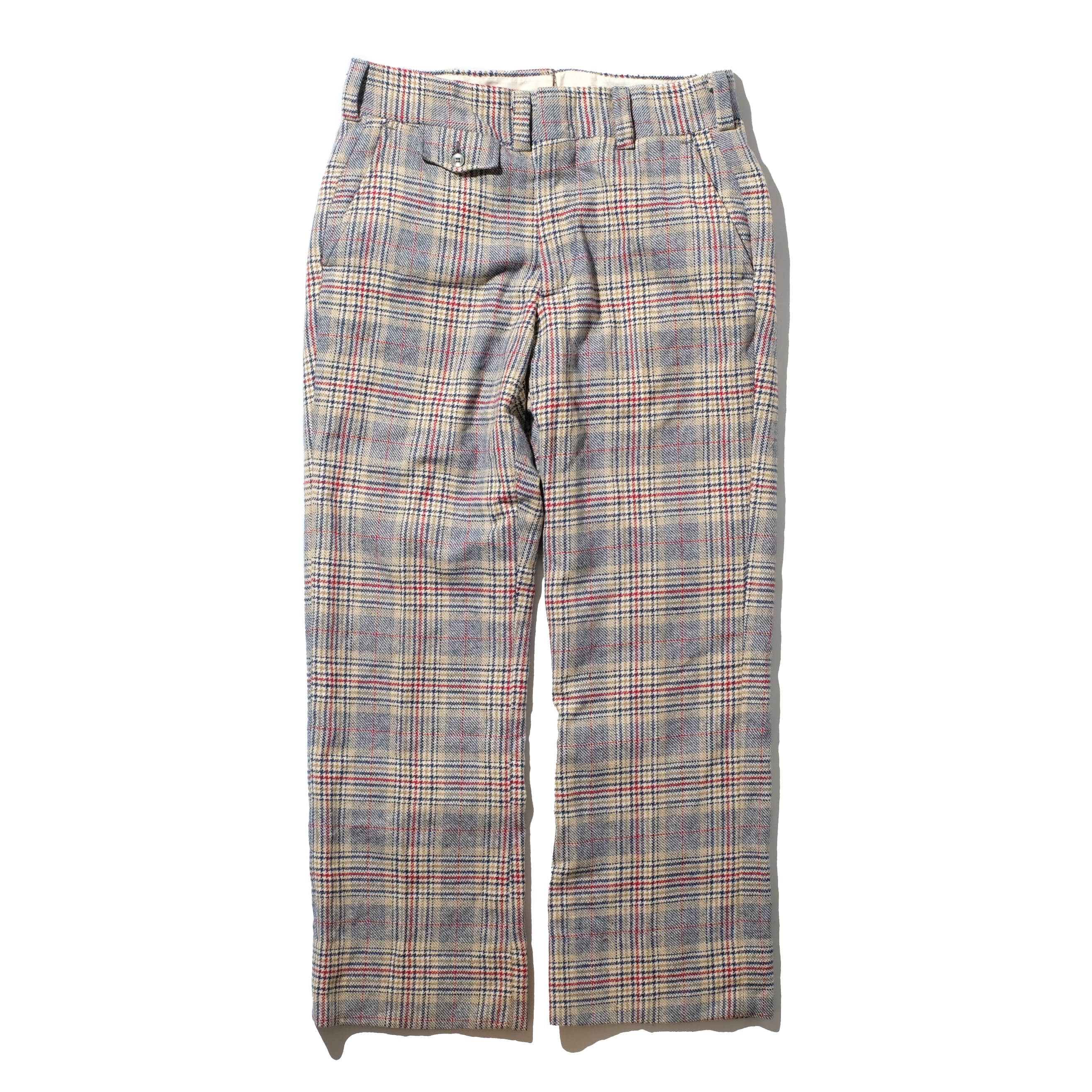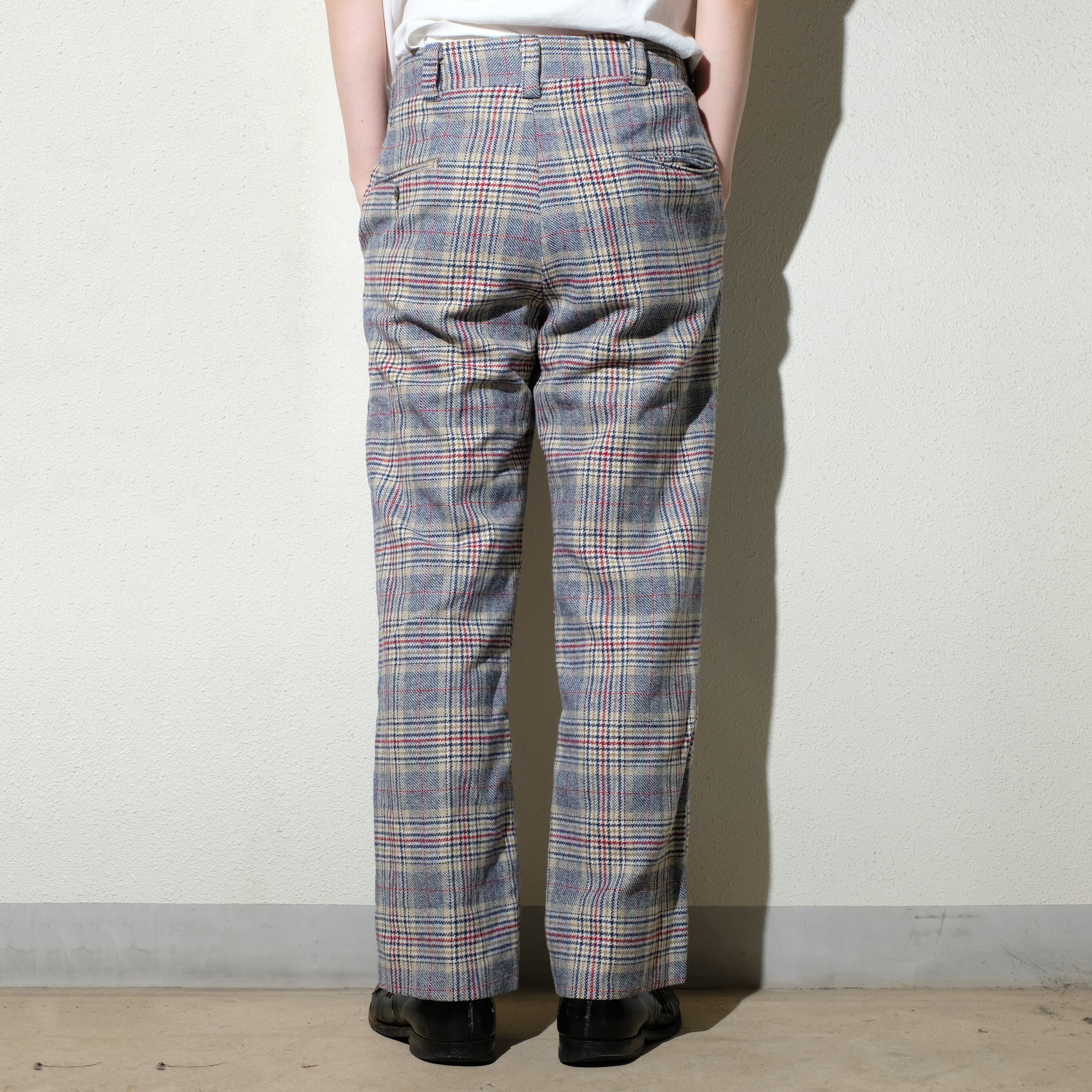 古いタロンジップのつく個体。タックも入らず裾もシングル、シンプルなルックスに適度に裾の広がるフレアシルエット。ウールの質感も古い年代のものらしく良い質感です。