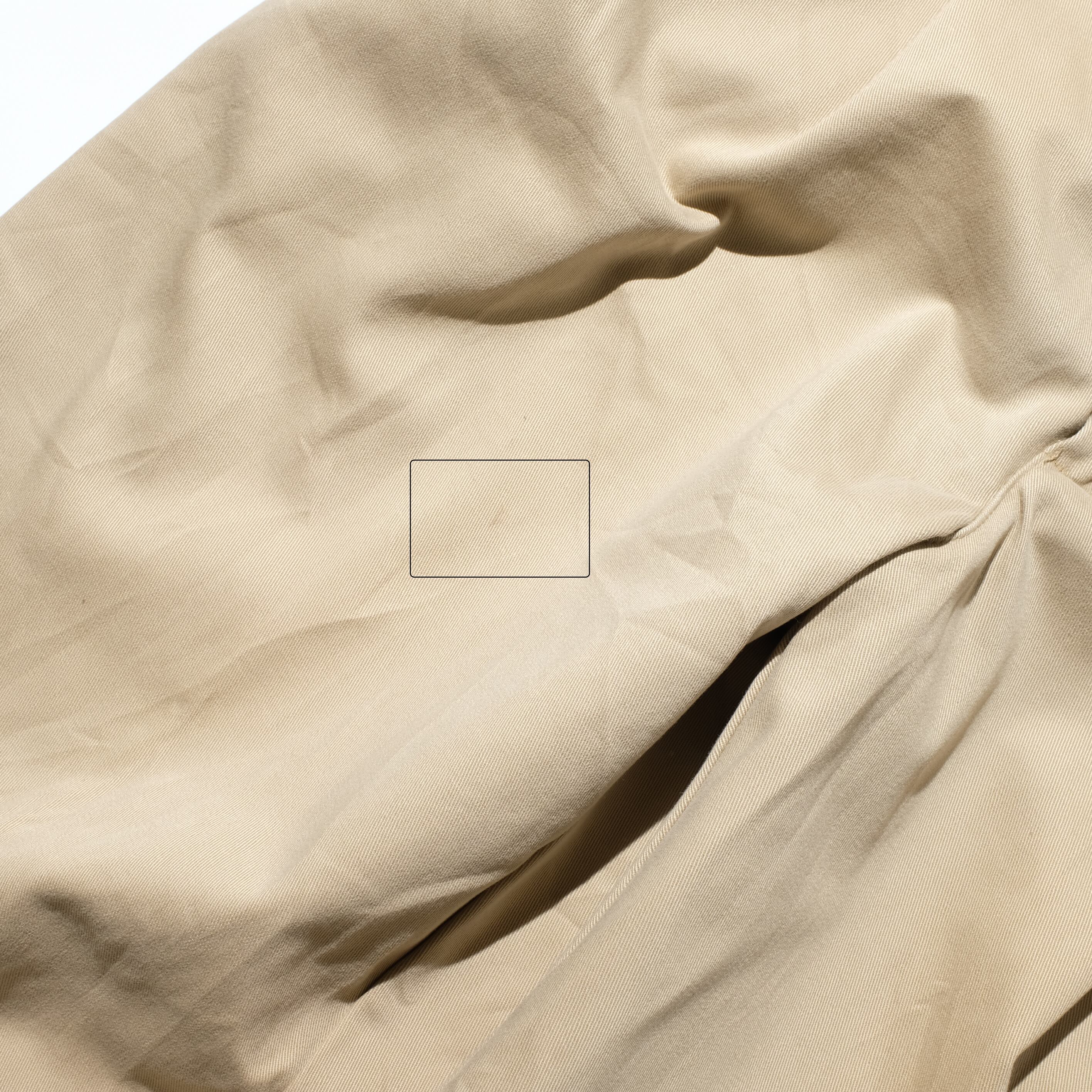 【状態】デッドストック商品となりますが、バック右の腰部分、右太もも部にヨゴレがございます。そのほか保管、経年によるタタミジワ、フラッシャーのホチキス跡、若干のウスヨゴレ