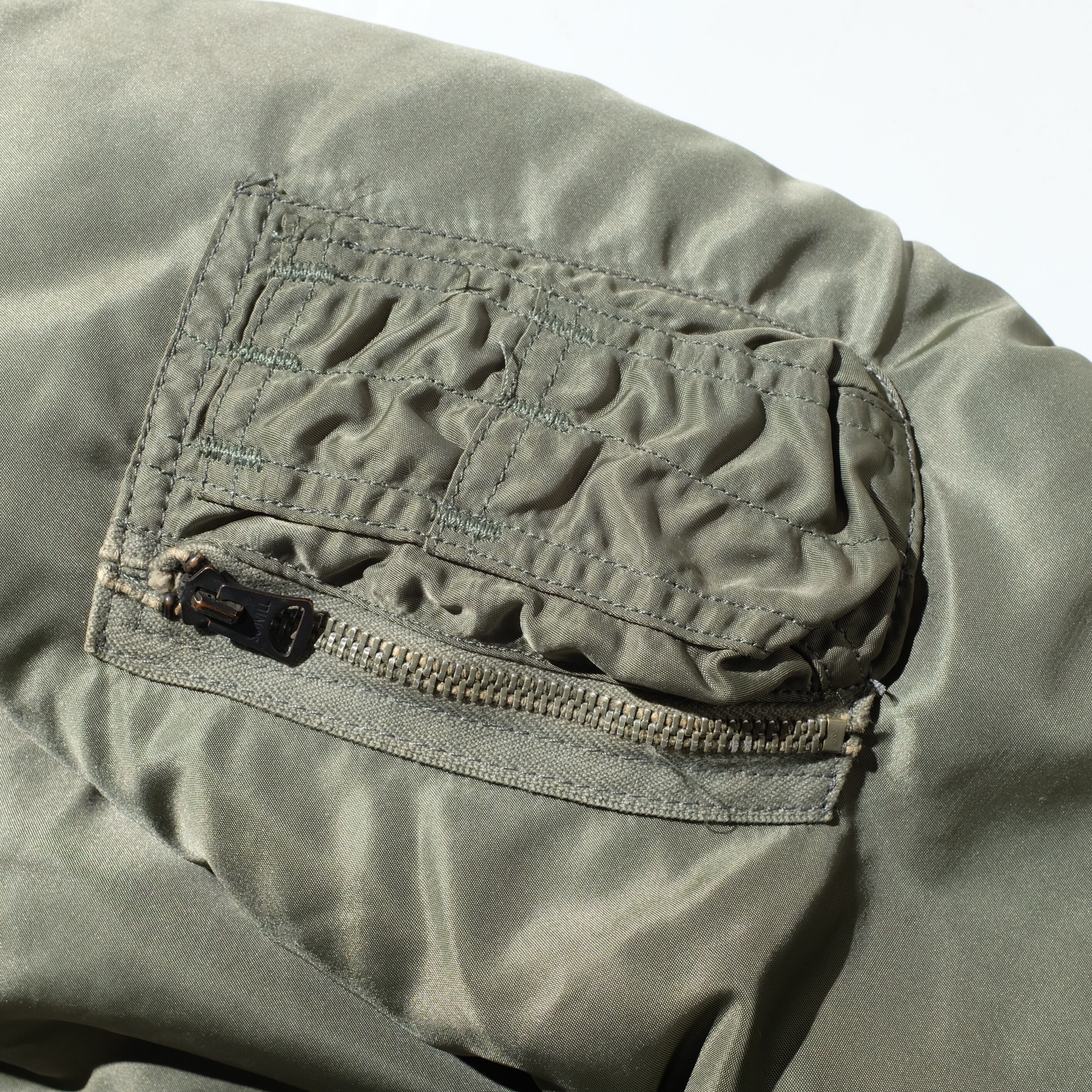 最近見かけることの少なくなった、ヴィンテージのMA-1。オリジナルにしか出せない良い雰囲気のオリーブグリーンカラーが魅力的です。