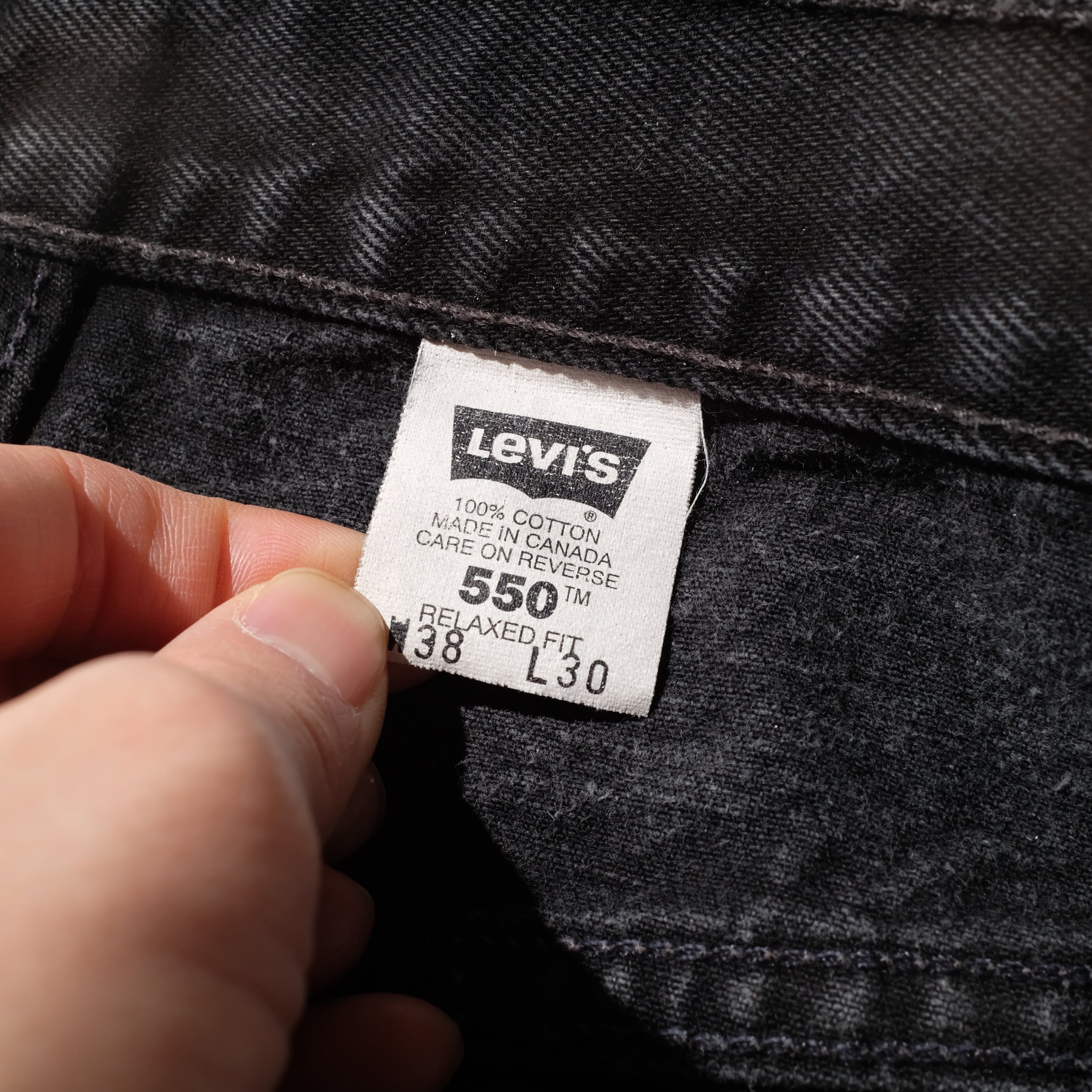 人気の高いカナダ製の一本。まだ黒々とブラックインディゴの残るコンディションの良い個体です。表記で38×30からチヂミが入り、実寸で36×30になった素晴らしいサイズ。550らしいバギーシルエットの強調された良いサイズです。