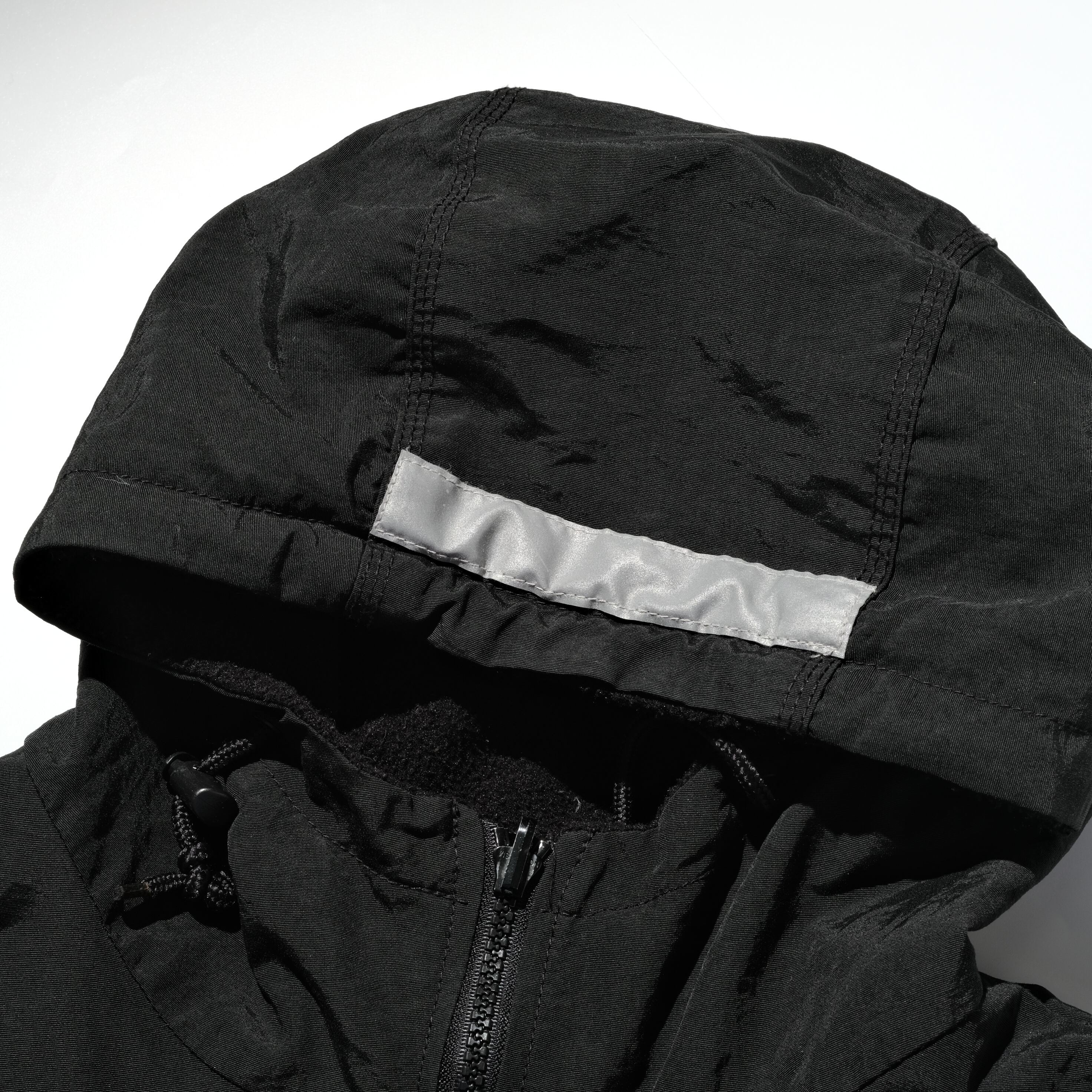 ブラックのナイロンに中にはしっかりとフリースを配し、そしてリフレクターもつく面白いデザインの一枚。