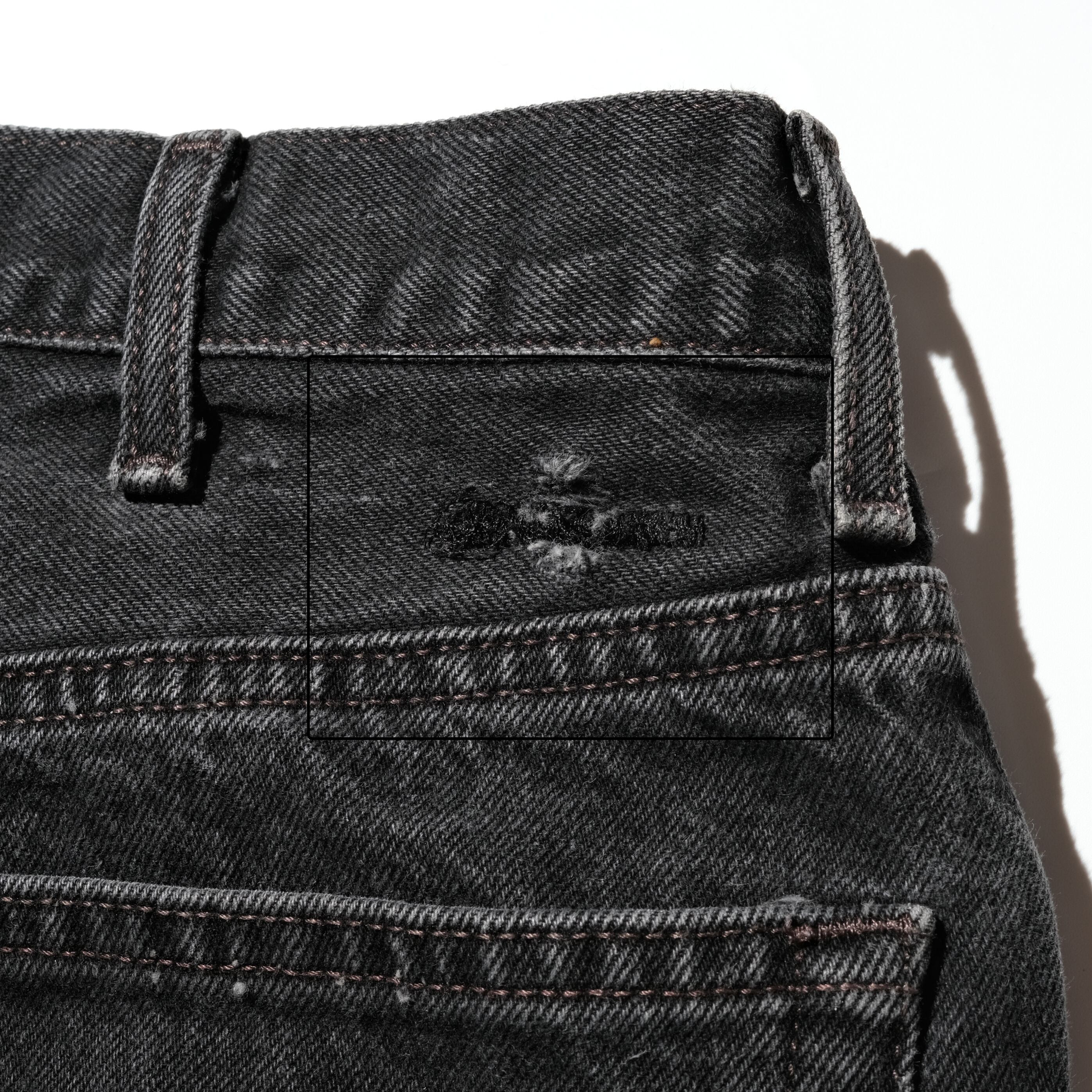 【状態】全体的に着用感、スレ。裾上げ(全所有者によって簡易的にあげられております。接着がやや剥がれてきております)。フェード。裾部にスレ。バック腰部にダメージ(トップスなどで隠れる部分ではございます)。