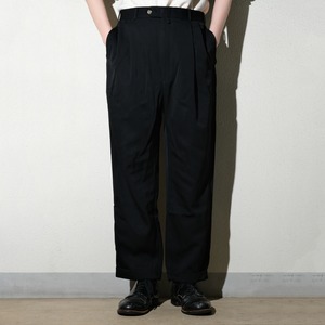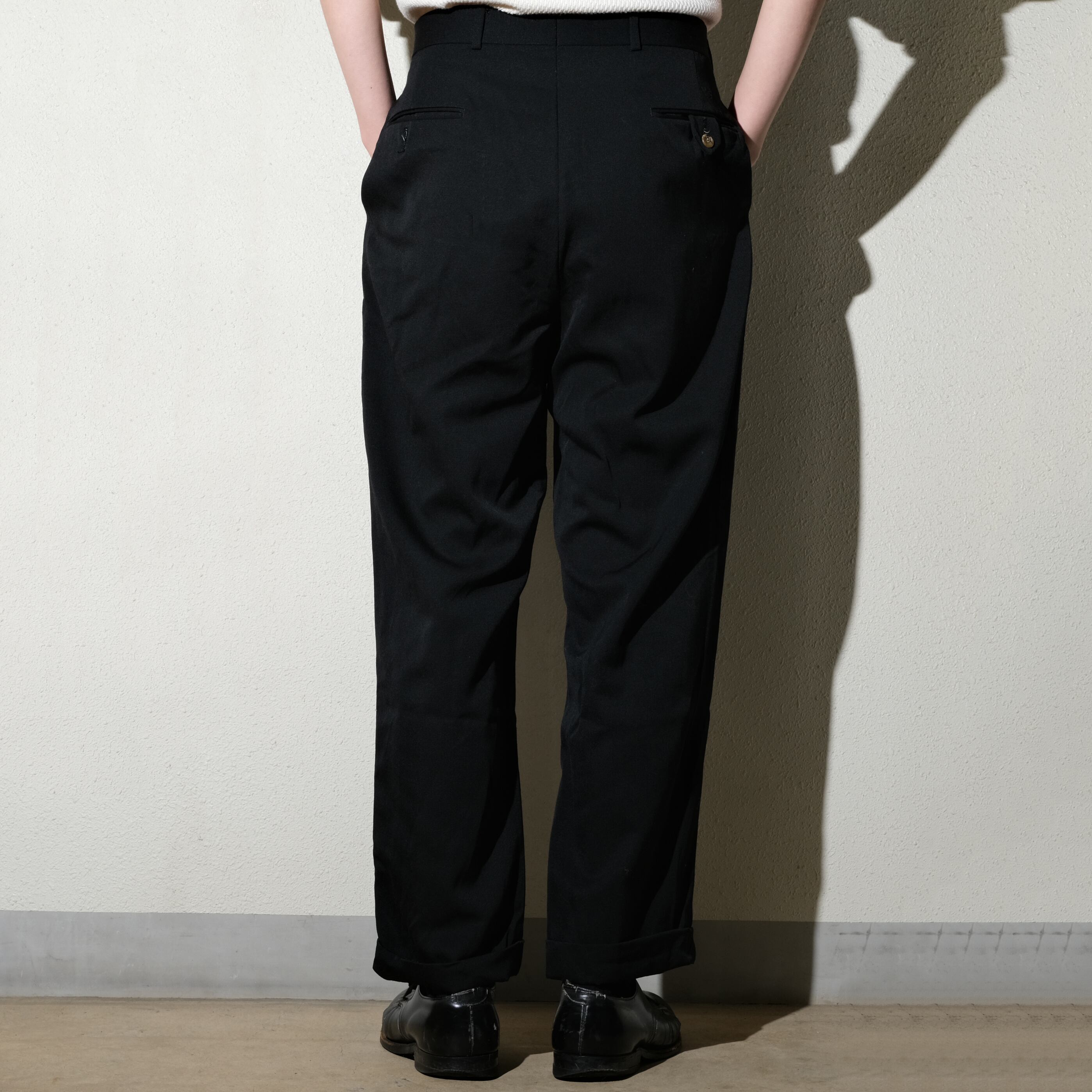 シルエットも綺麗ですし、バックポケットのボタンのカラーもデザイン的に効いていますね。ブラックのスラックスをお探しだった方にはオススメの一本です。