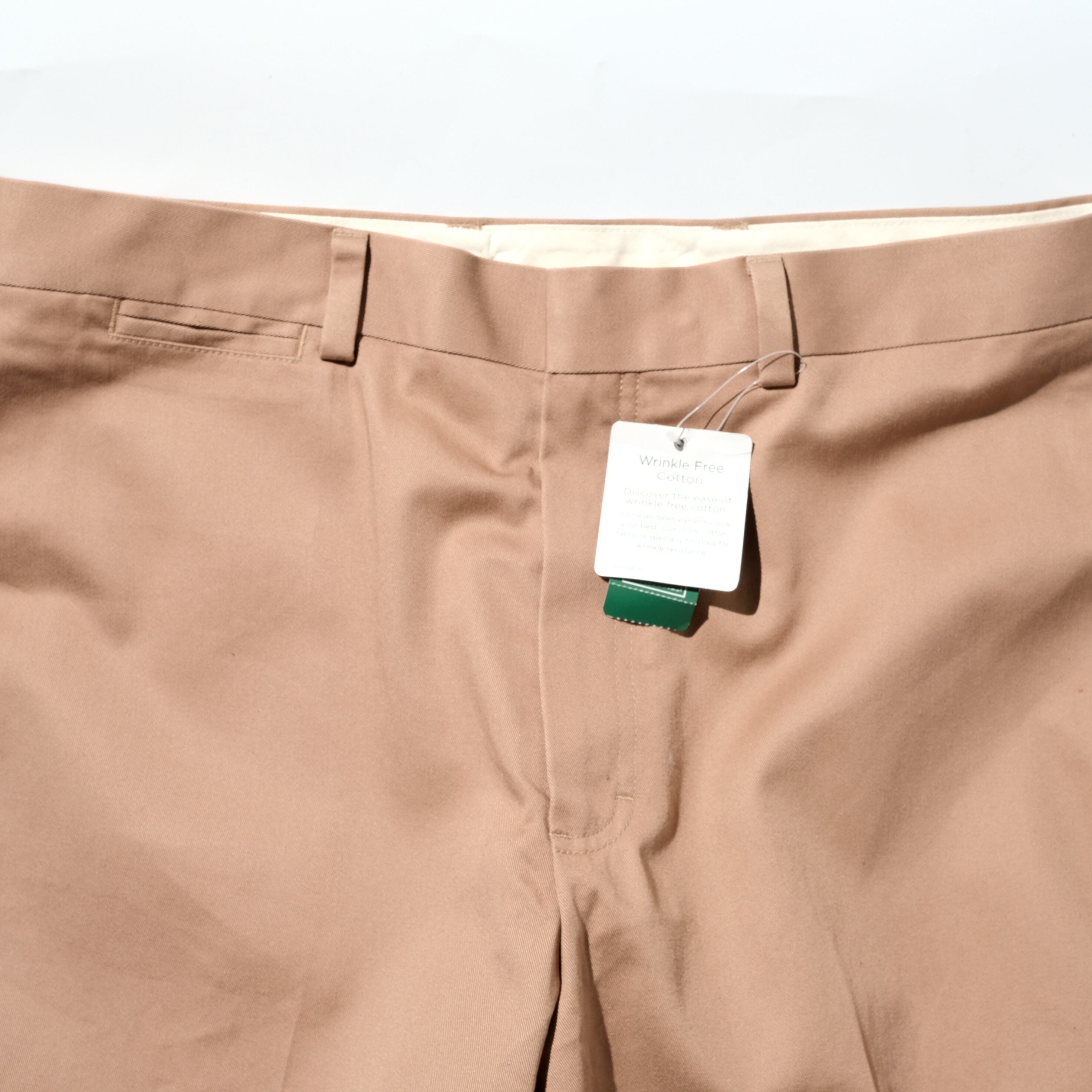 比較的新しい年代のタグのつく一本。フロントにタックは入らないシンプルなルックスにやや赤っぽいライトブラウンが上品な質感です。