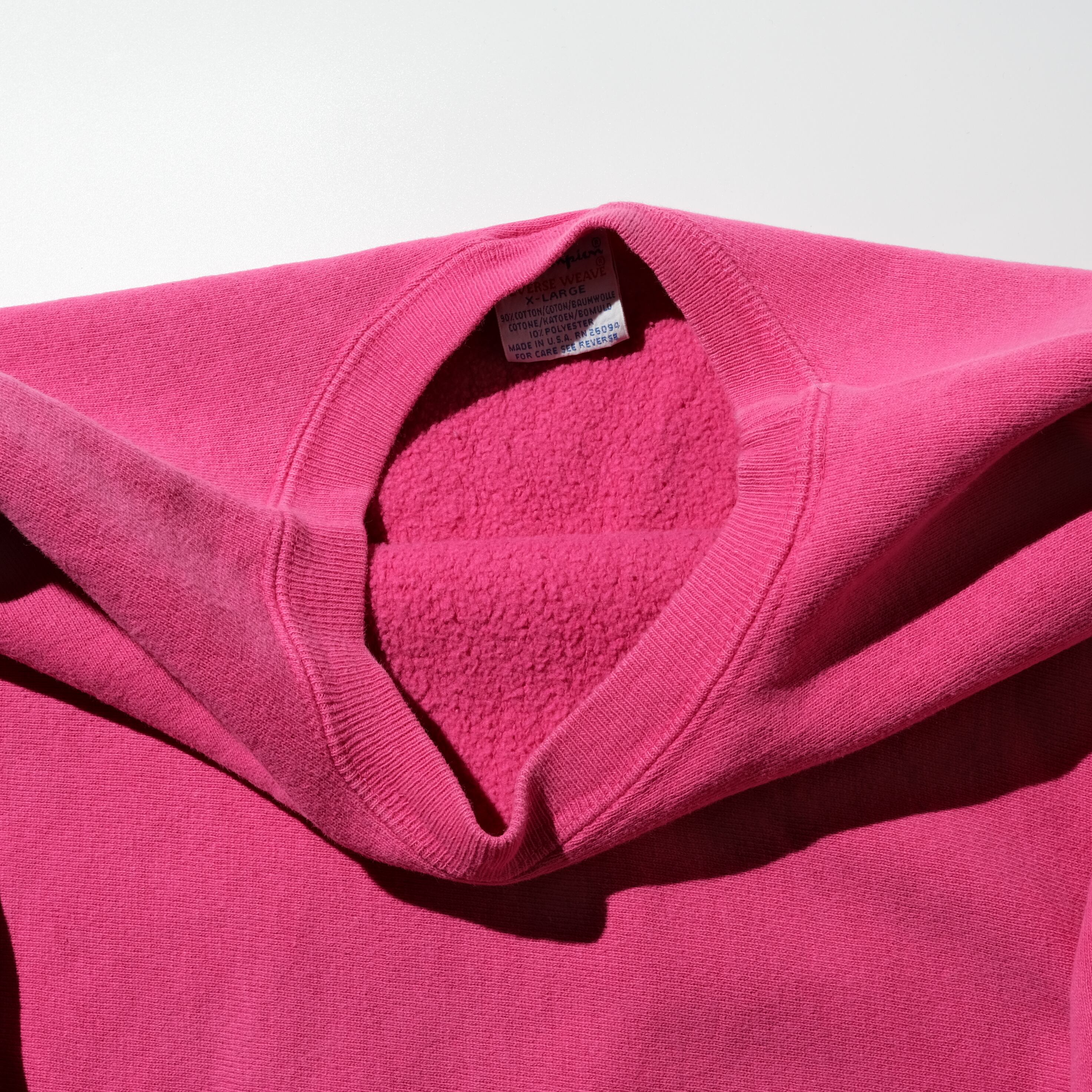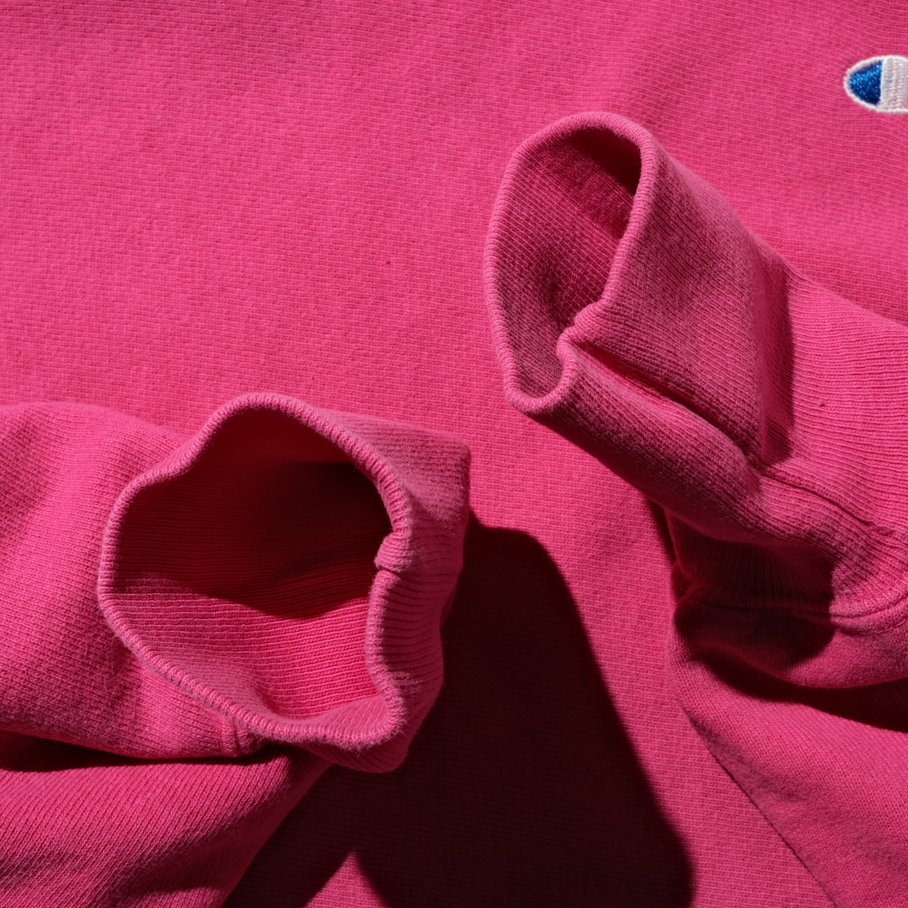 レアカラーのピンク。やはり見かけなさから袖を通してみたいカラーと言えるのではないでしょうか。ダボっとしたリバース特有のシルエットで、男性が着ても決して可愛らしいかんじにならない良いカラーです。