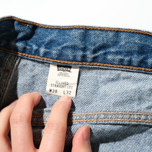 01年、メキシコ製の個体。聞き慣れない品番ですがリラックスストレートとタグにあるとおり太めシルエットに適度なテーパードが魅力的な一本です。また大きいサイズで珍しい立体感のあるフェードもいいです。ぜひご検討ください。