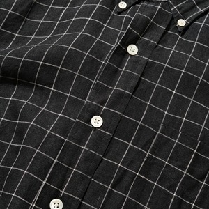 とにかくこの配色、チェックパターンにリネンの質感が素晴らしいですが、さらに高級感のある、通常のセルロイドのものよりグレードの高い貝ボタンが使用されています。