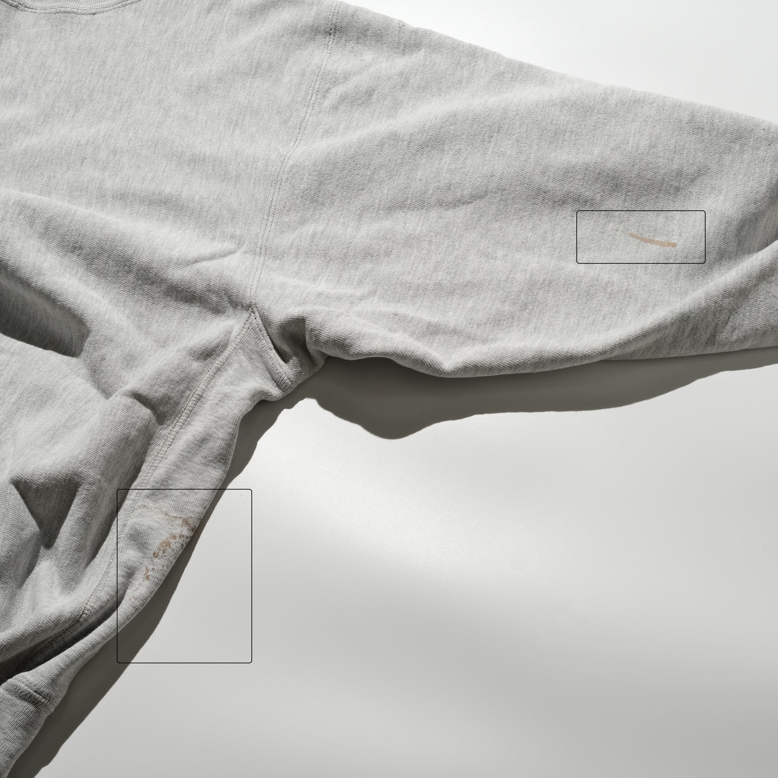 【状態】全体的に着用感、スレ。首元リブ、袖リブにダメージ。そのほかボディにキズ。全体的にヨゴレ。目立つダメージやヨゴレなど見当たりません。