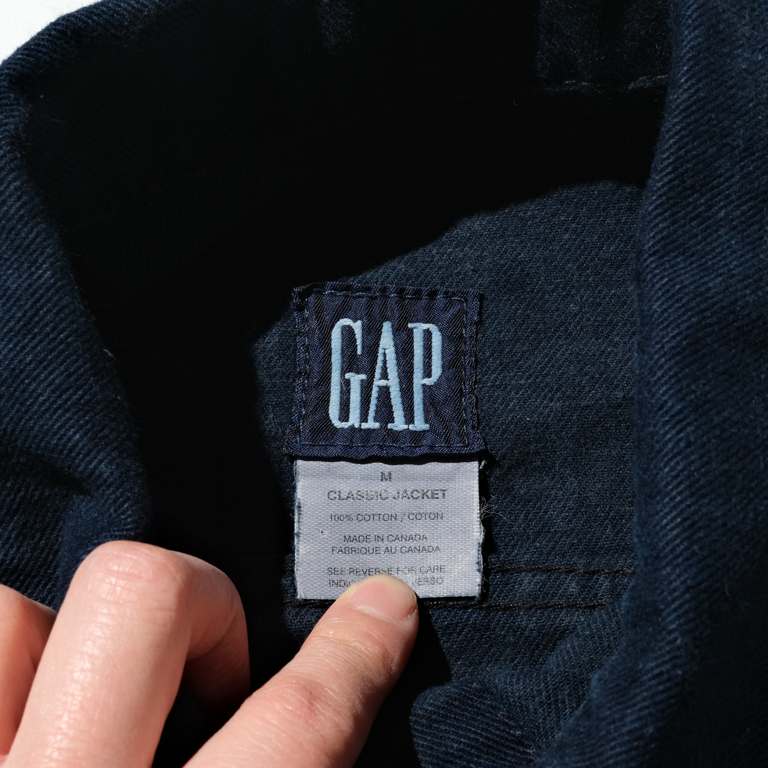 90年代のタグのつく、カナダ製のOLD GAP。おそらく合わせからレディスのものになるとは思いますが、男性でもややゆとりを持ってきていただける身幅のあるサイズです。