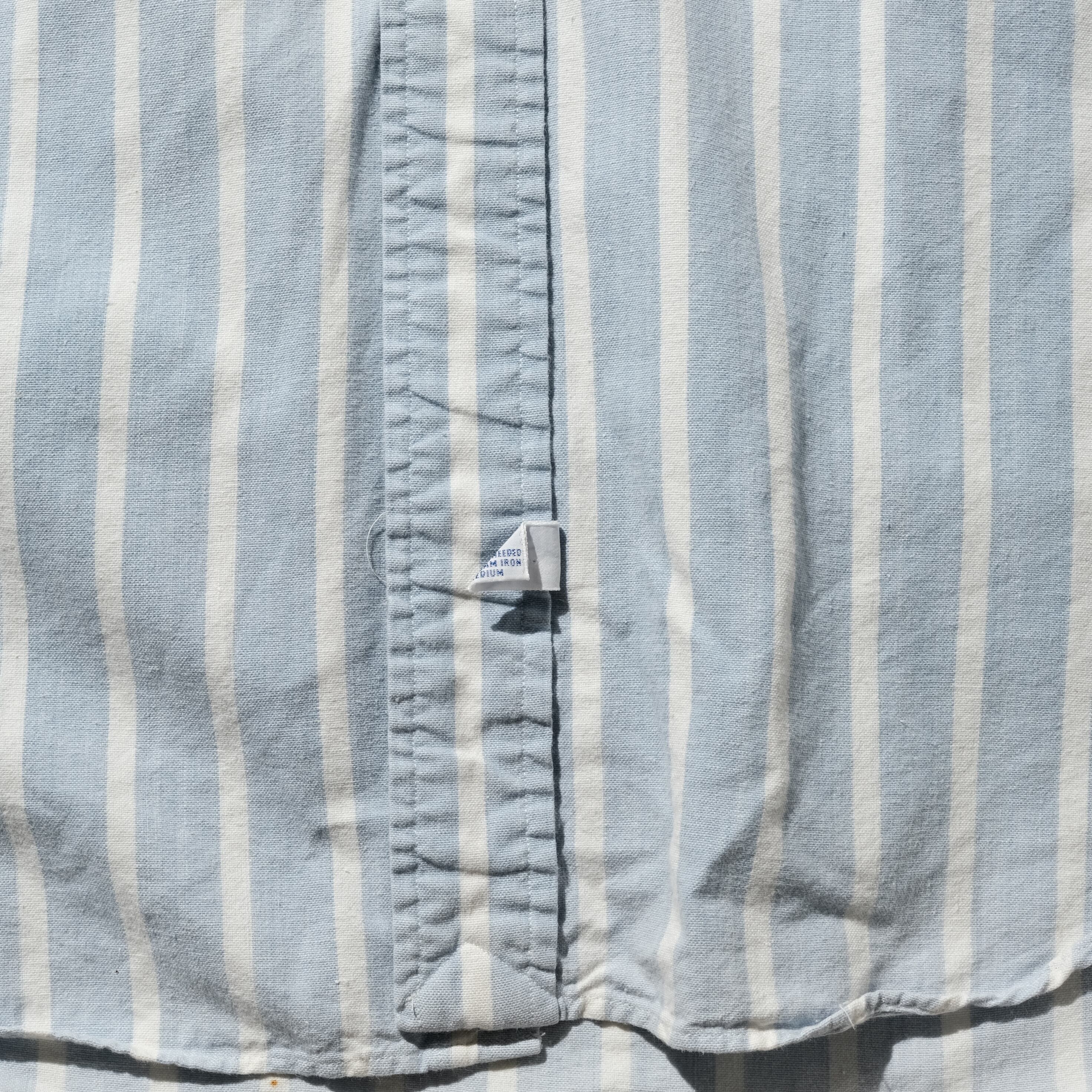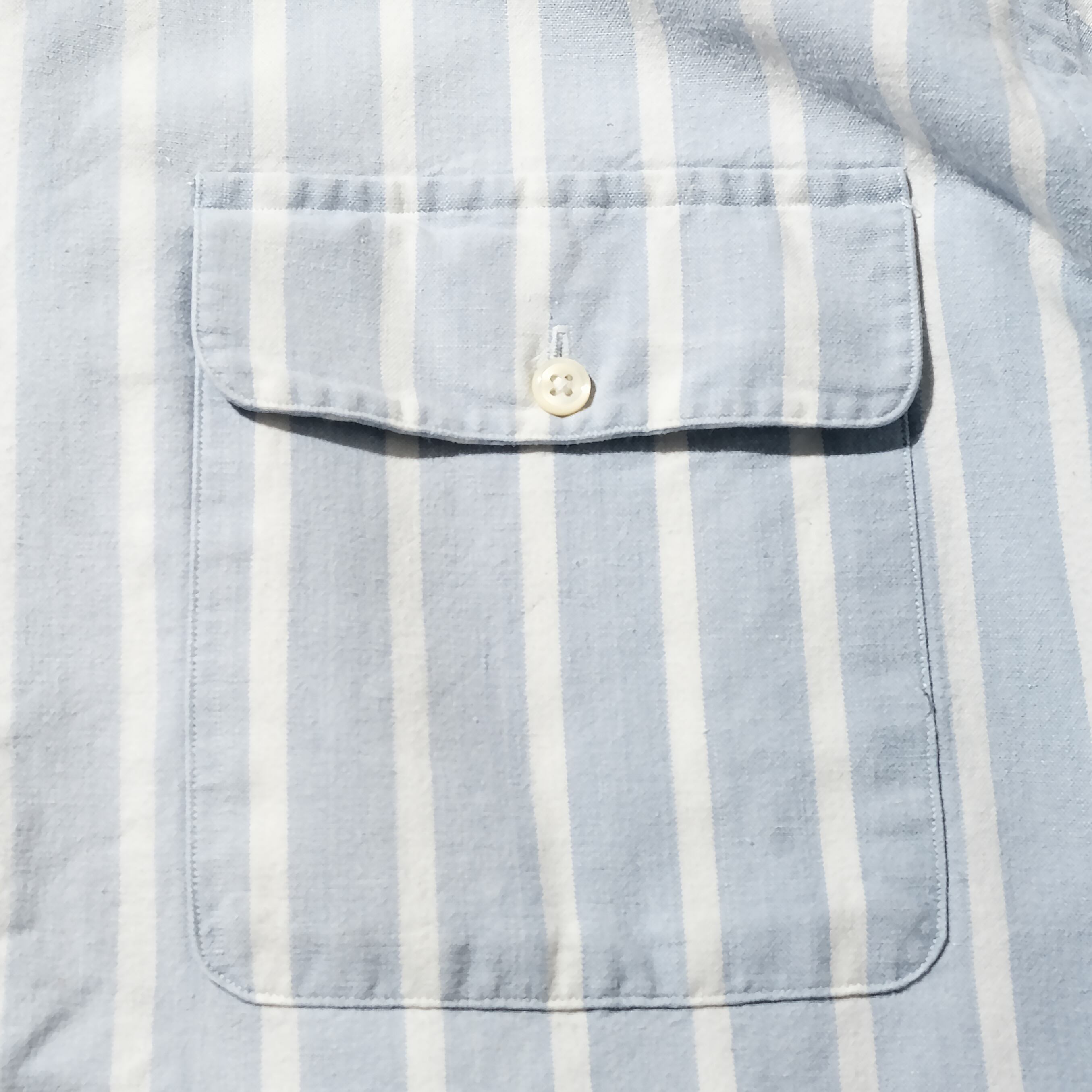 80's〜の古いタグのつく、シンガポール製の一枚。胸のポニー刺繍なし、フラップ付きのポケット×2に淡いカラーが魅力の一枚。