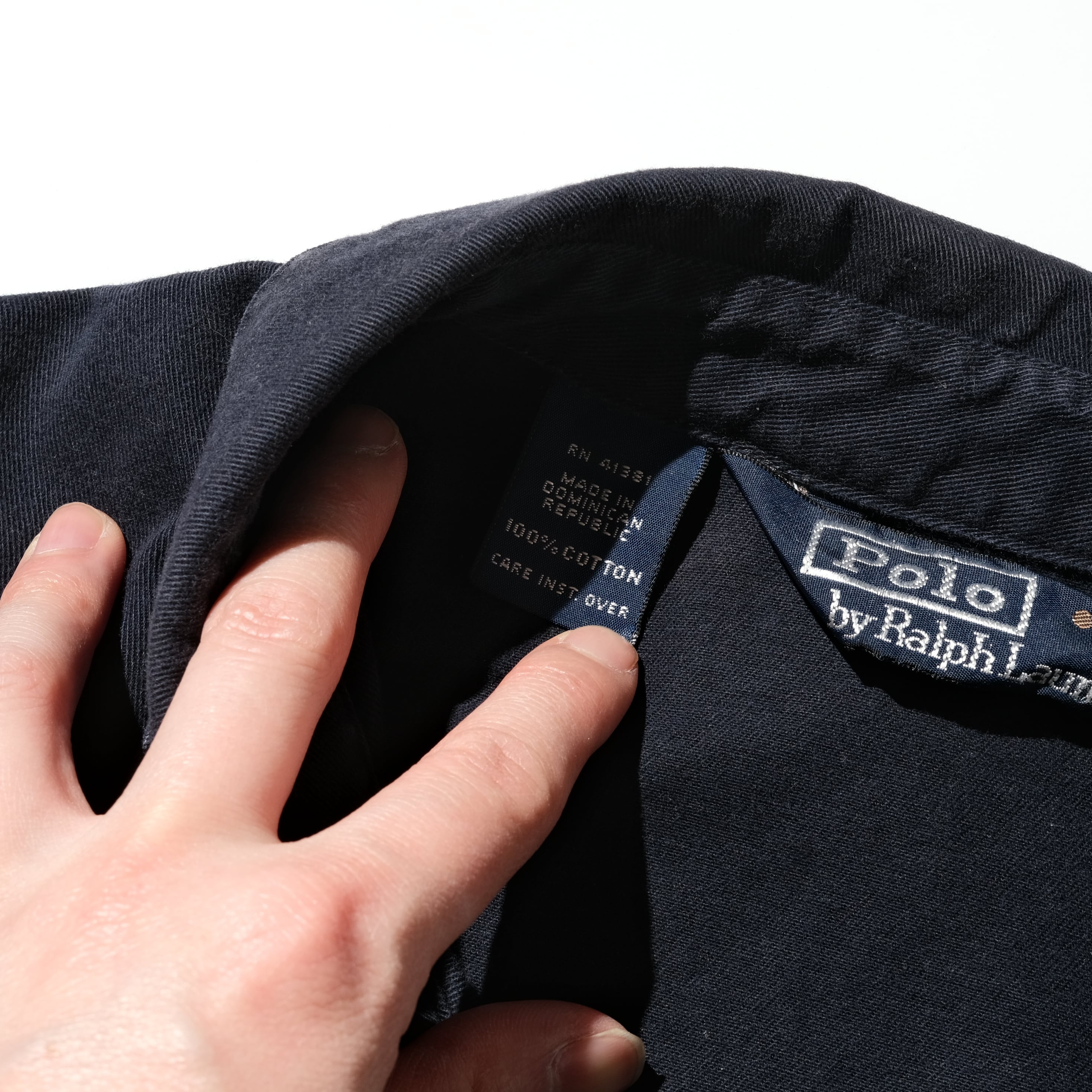 90'sのドミニカ製の一枚。USA製のものと同じ、コットン100%の生地。こちらはネイビーカラーでフェード感やスレなども少ないコンディションの良い個体ですので、着込んでいくごとに増していく風合いを楽しんでいただけるかと思います。