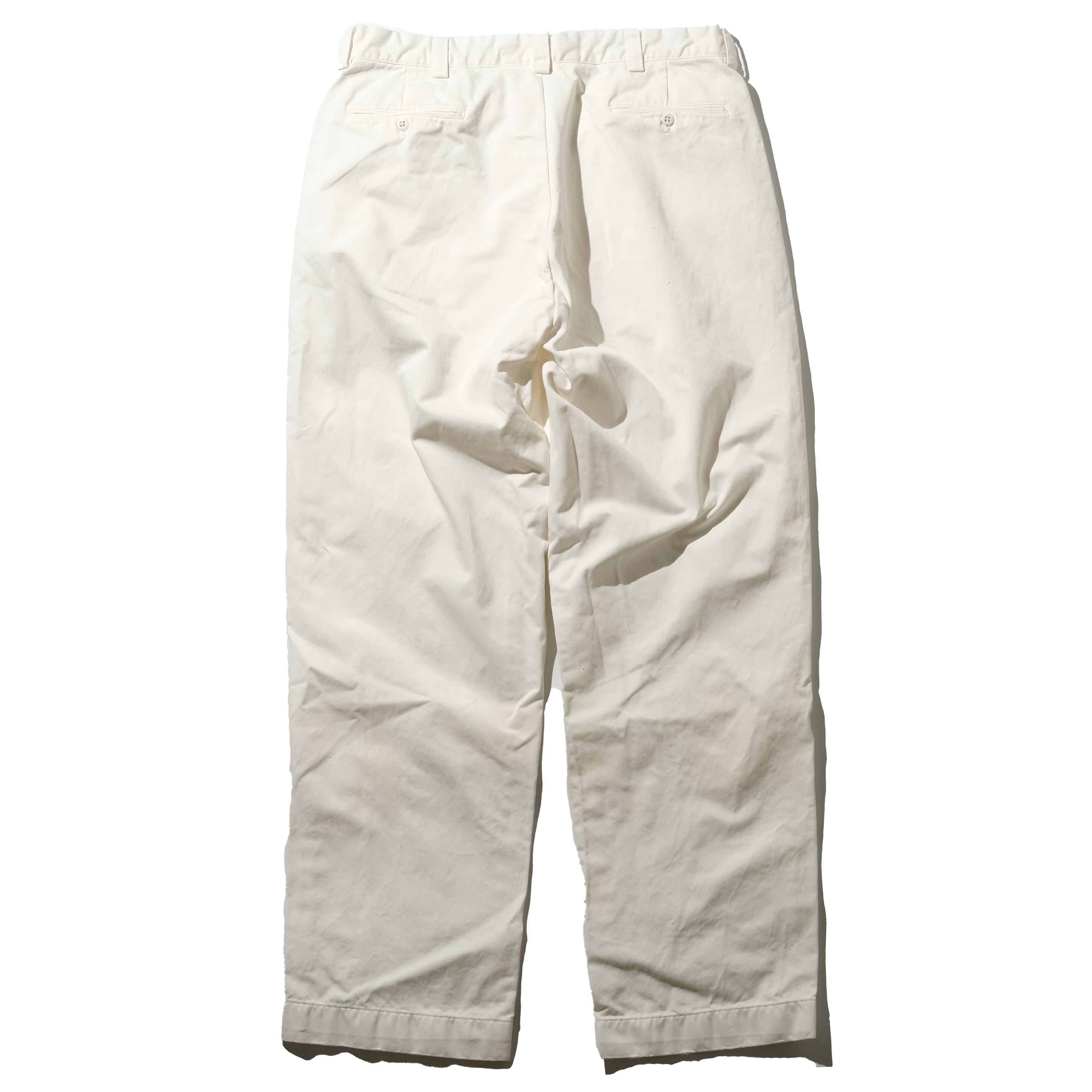 【状態】全体的に着用感、スレ。フロント膝付近に若干のヨゴレ。ヒップポケット、バック膝裏付近に若干のヨゴレ。ホワイトのカラーのアイテムですのでヨゴレ自体は目立つカラーですが、比較的綺麗な状態の個体ではあるかと思います。