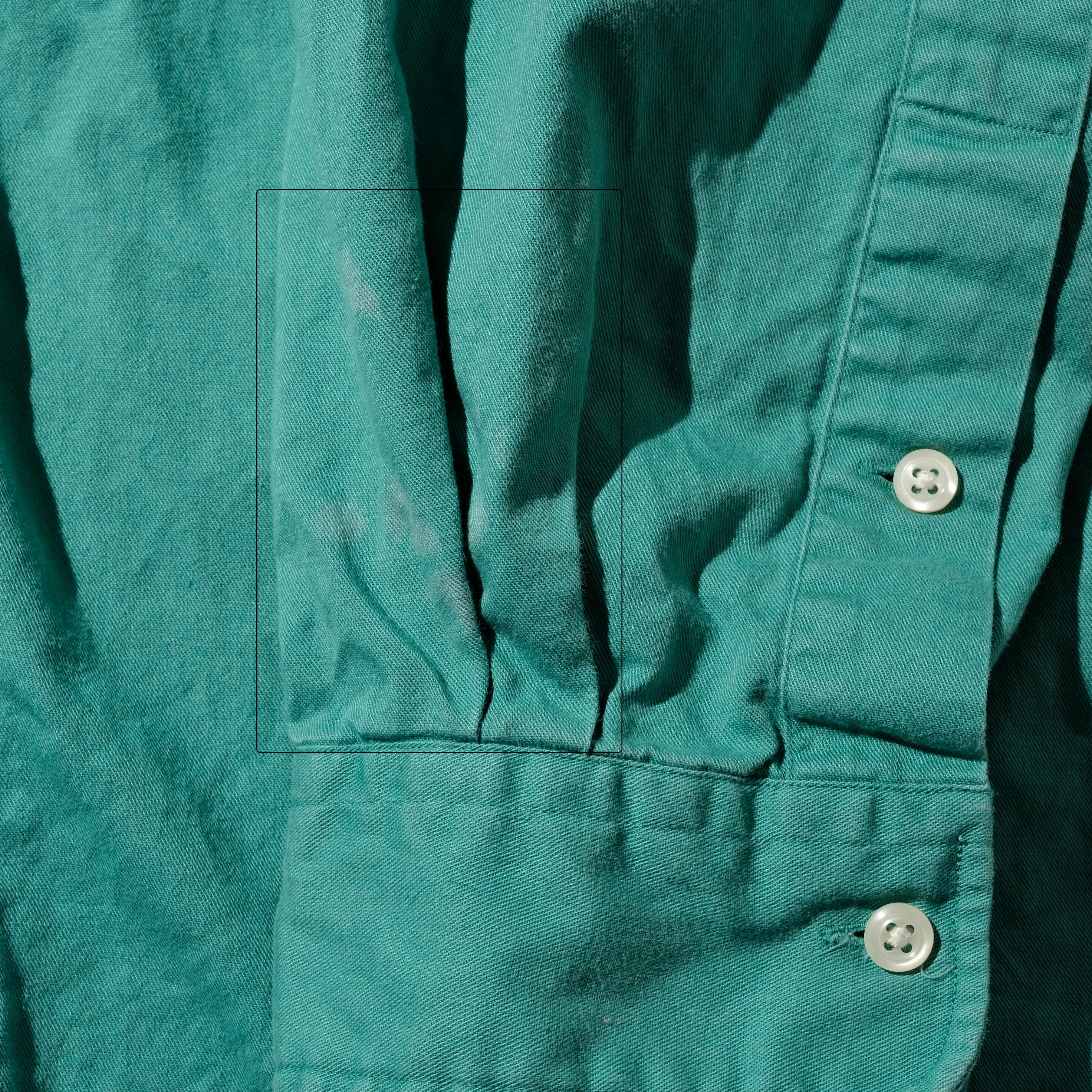 人気のオックスフォード生地、あまり見かけないエメラルドカラーが魅力的な一枚。
