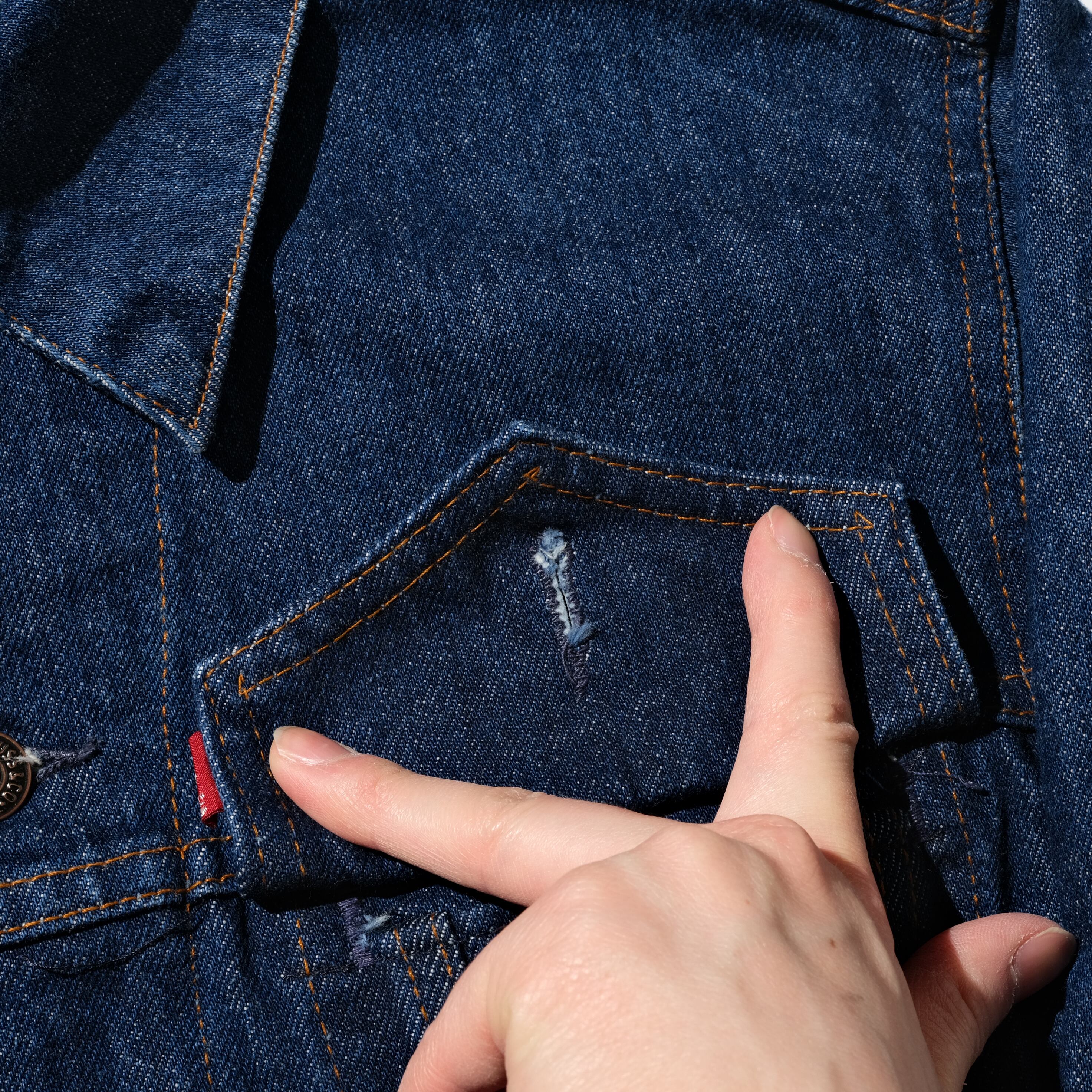 【状態】着用感、スレなども少なく、インディゴの色の色濃く残るいいコンディションです。左袖部に織りムラ(製造時に発生するものでキズなどではございません)。