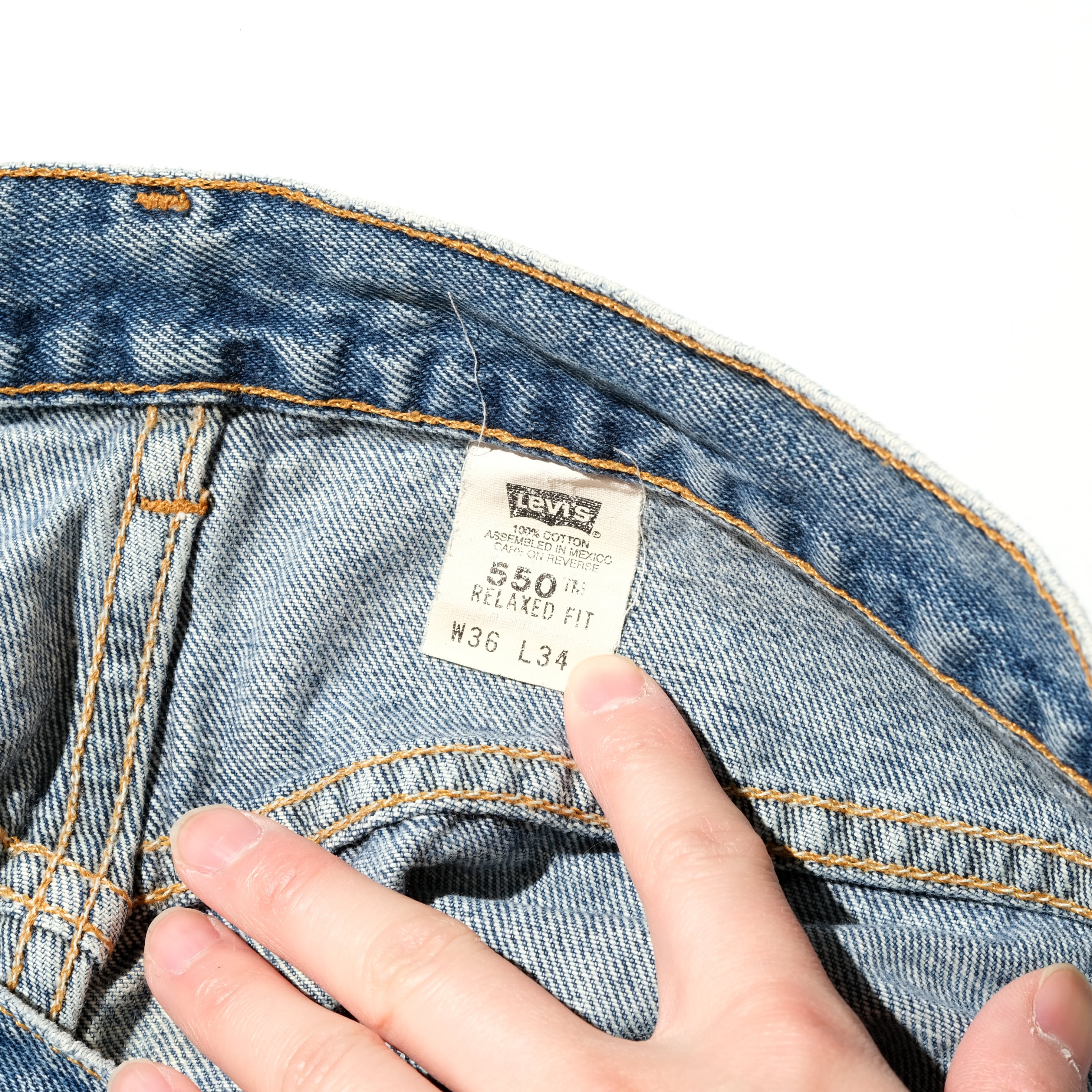 99年、メキシコ製の個体。比較的ブルーの部分が残ったインディゴのカラー。フェード感も良い個体かなと思います。550特有のいわゆるバギーシルエット、このカラーはこれからの季節に活躍しそうですね。