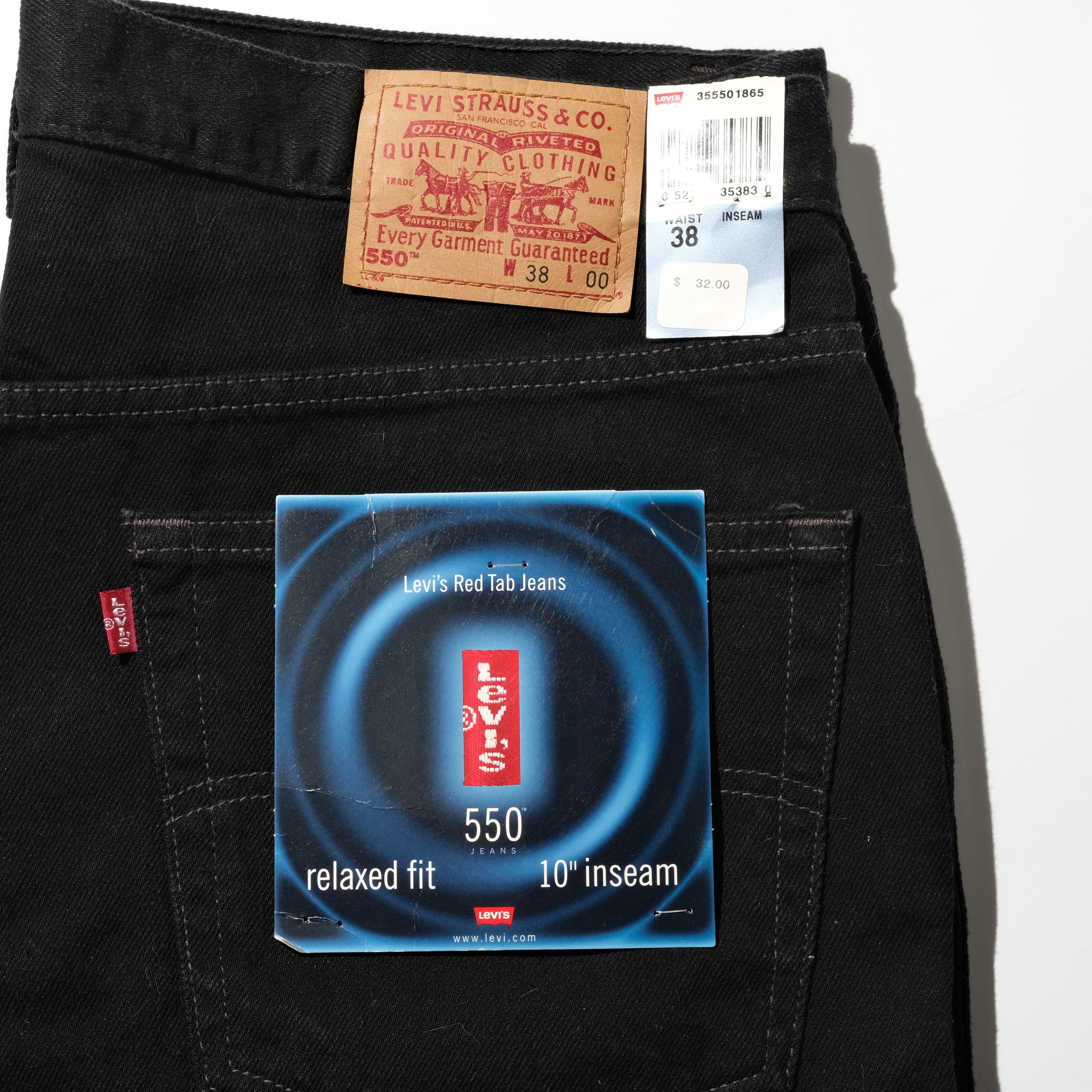 "DEAD STOCK" 90's Levi's 550 black denim shorts size 38