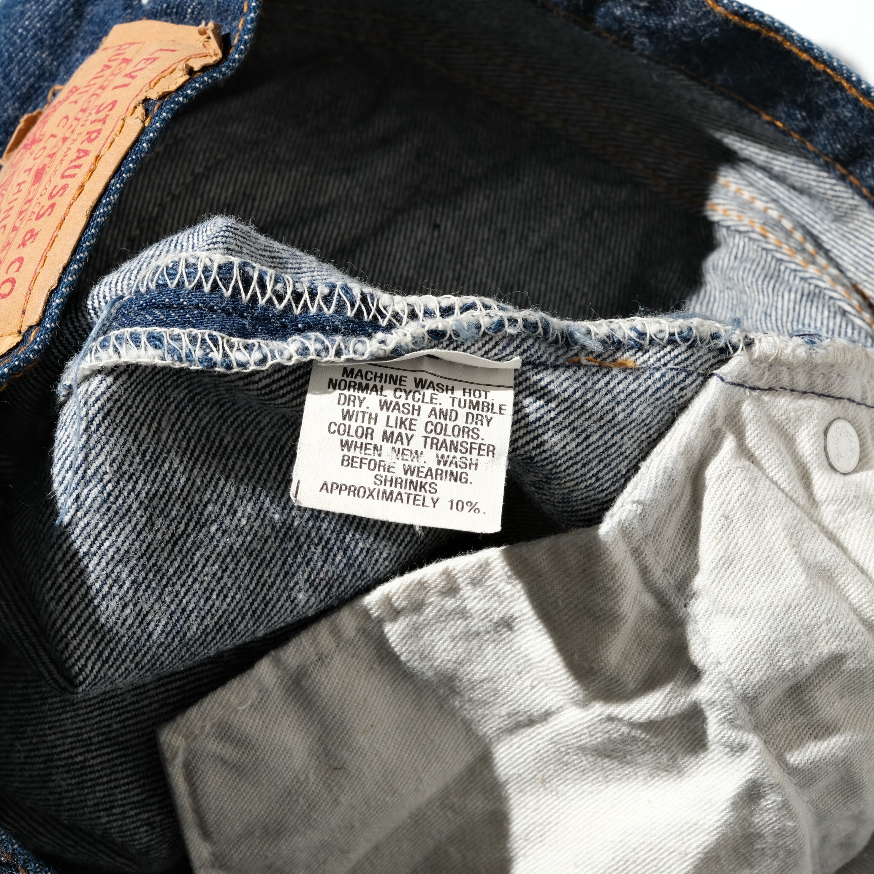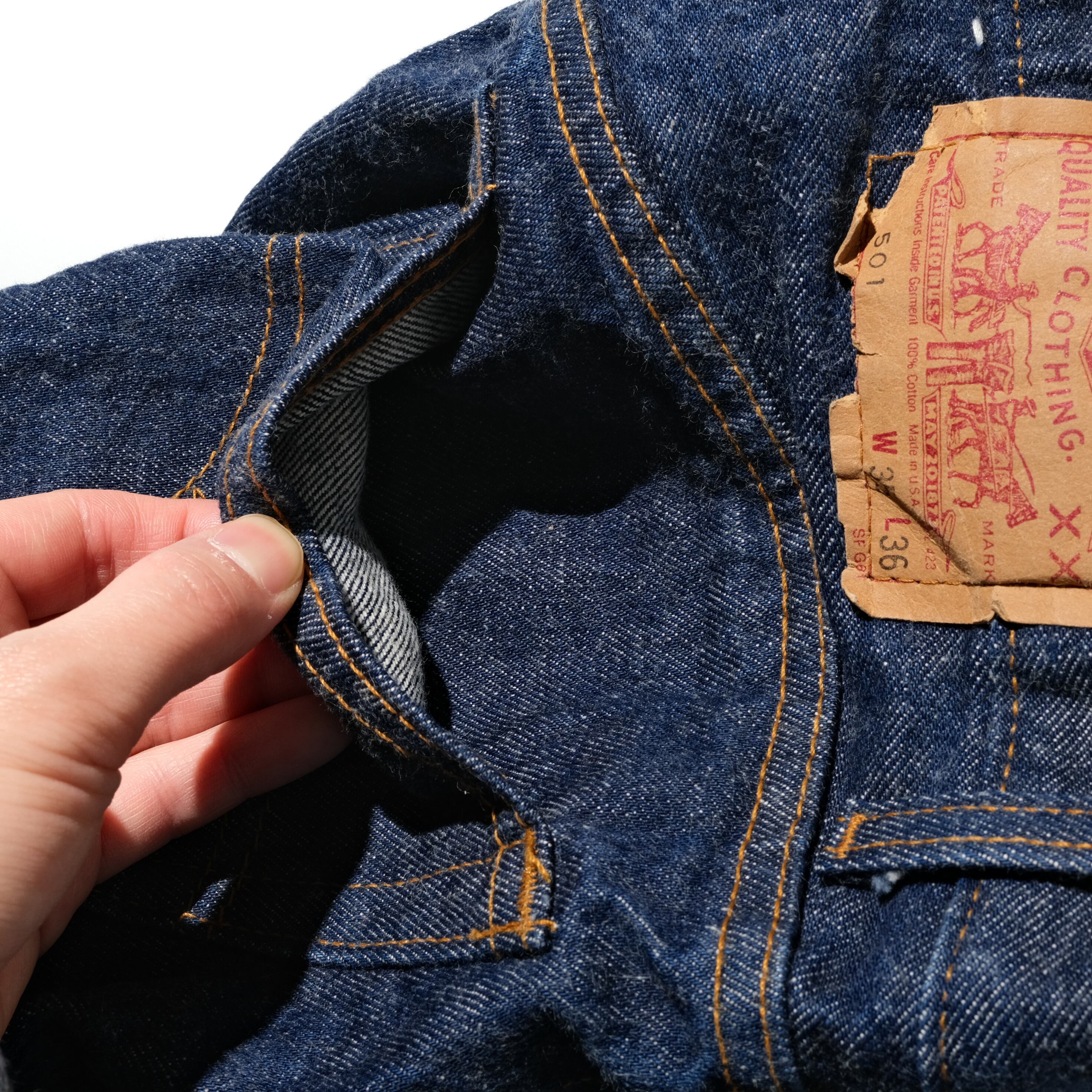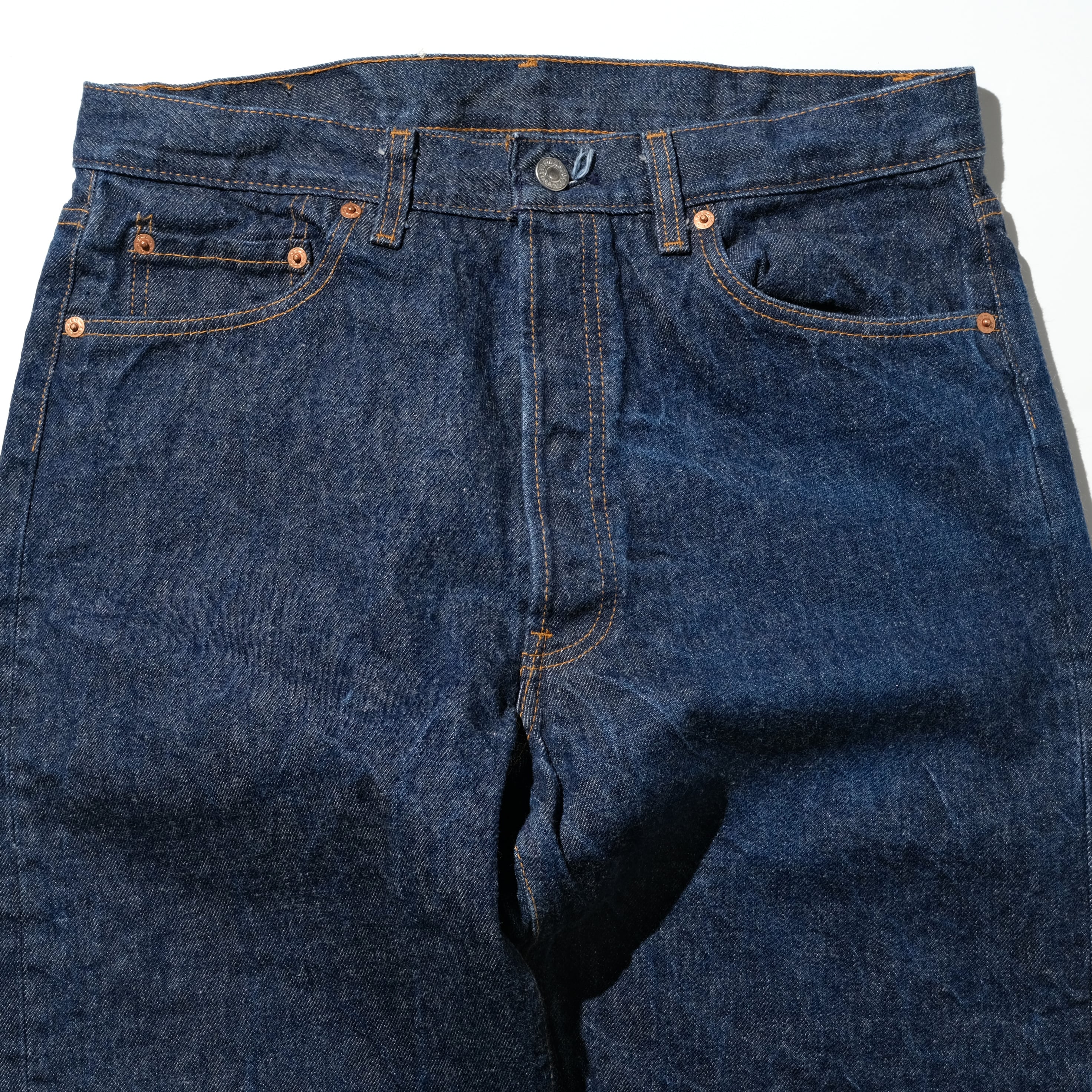 品番もリジッドの状態で販売されていたことを表す501-0000ですのでそこからおそらくワンウォッシュ程度の極上のコンディション。90'sの501ももちろん良いですが、赤耳よりの青みの強いインディゴのカラーがオールド感を感じさせてくれます。