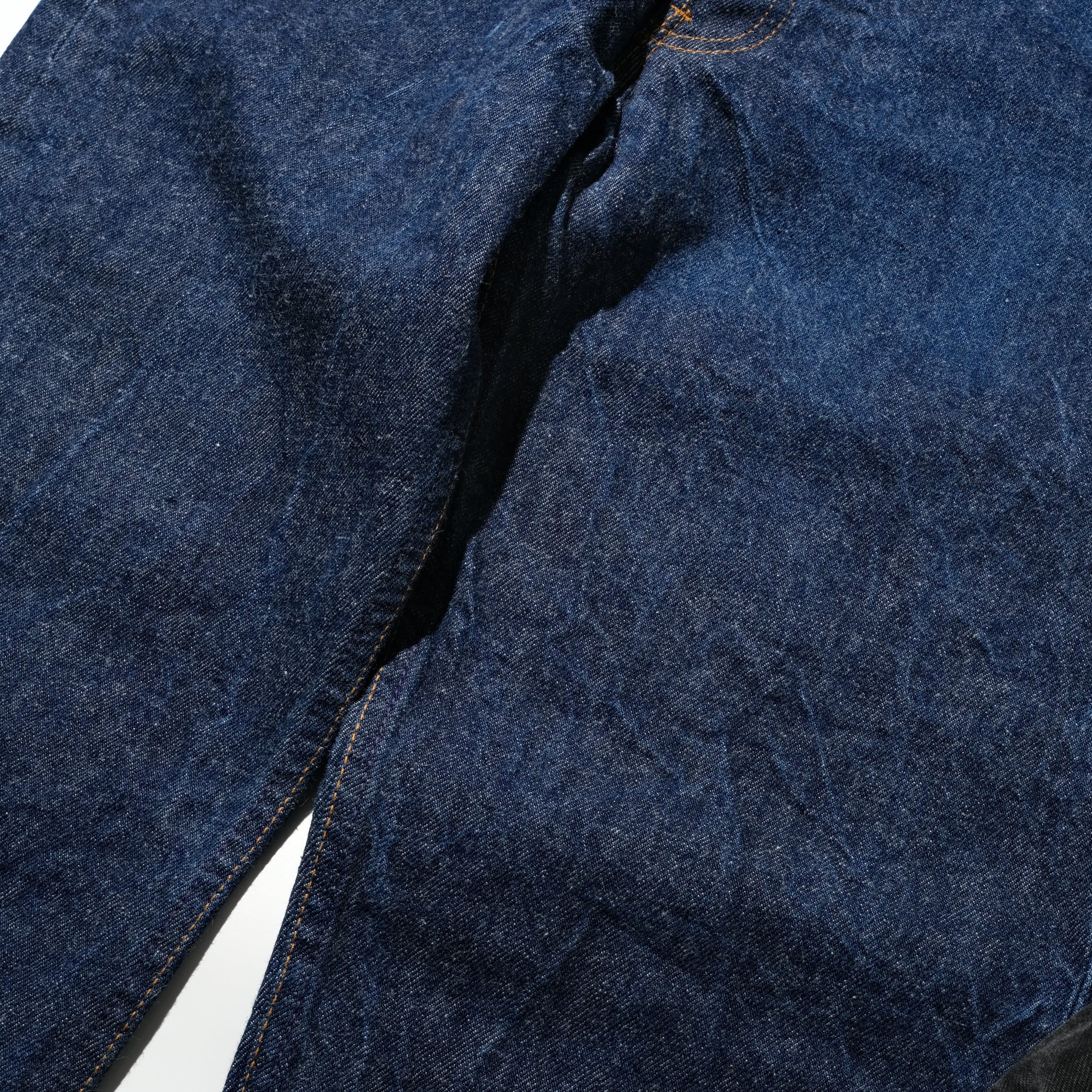 【状態】1ウォッシュ程度の濃紺コンディションになります。長期保管によるスレが左太もも部分にございますがそのほか着用感などほぼ感じられない素晴らしいコンディションです。