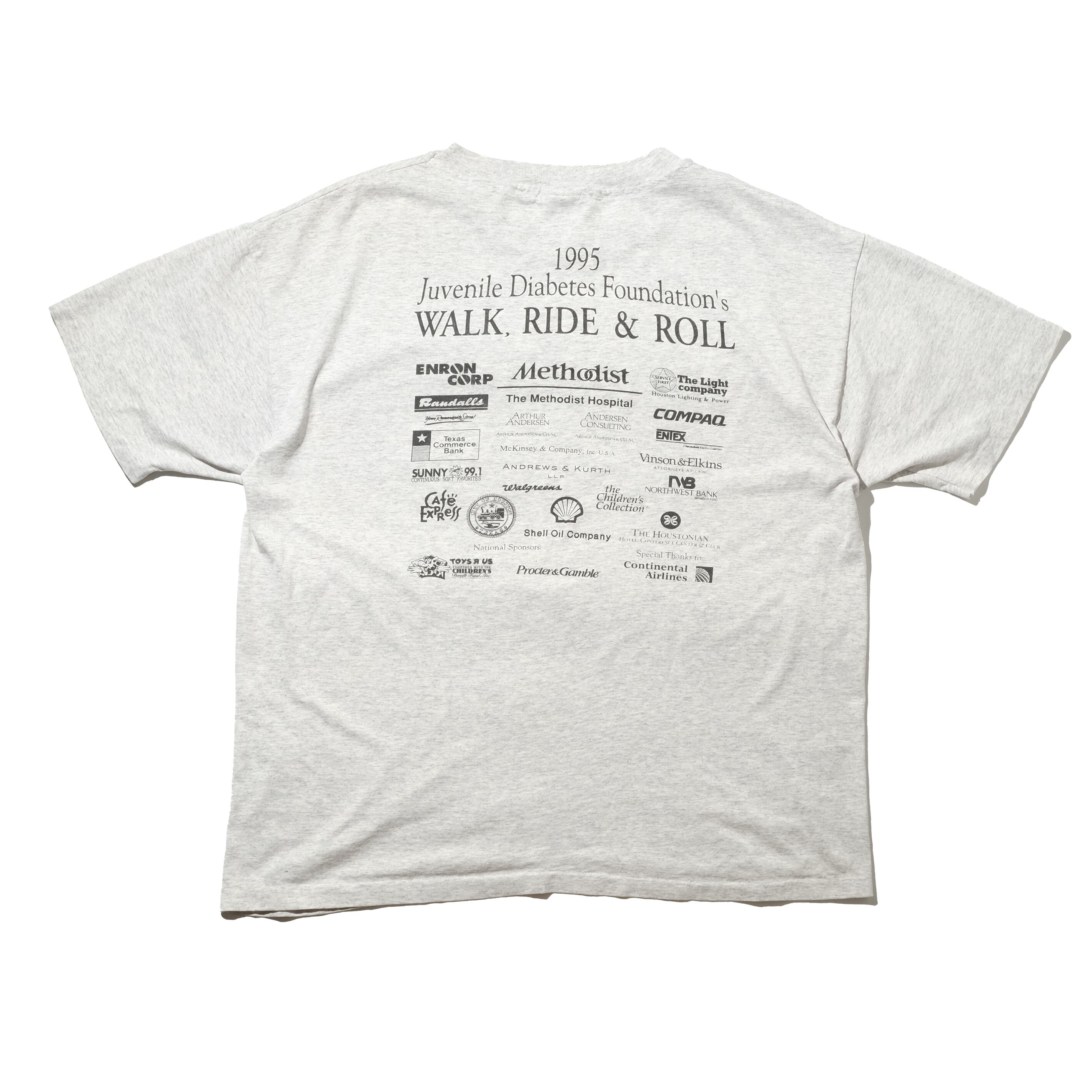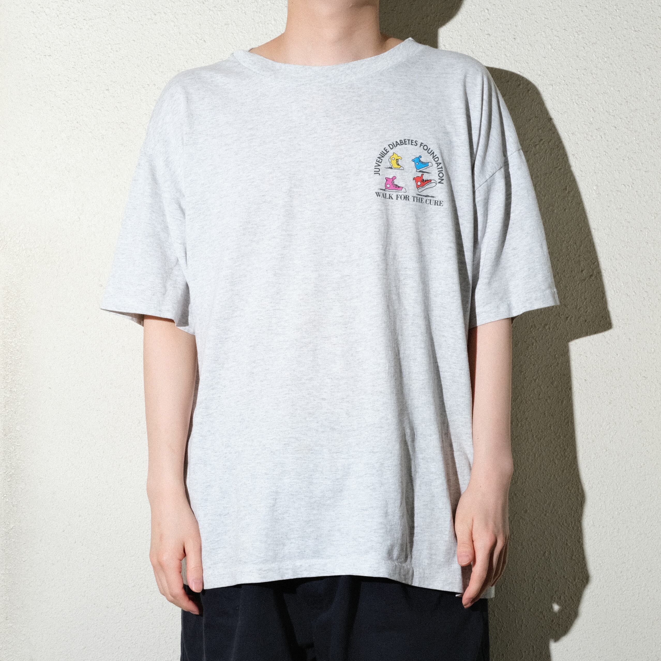 JDFという1型糖尿病の治療を援助するNPOのプリントが入った一枚。団体の取り組みとして先天的な糖尿病の子供達とともに自転車やランニングなどを行うイベントを開催しているようで、背面にあしらわれているのはそのイベントのスポンサーの企業たちになります。