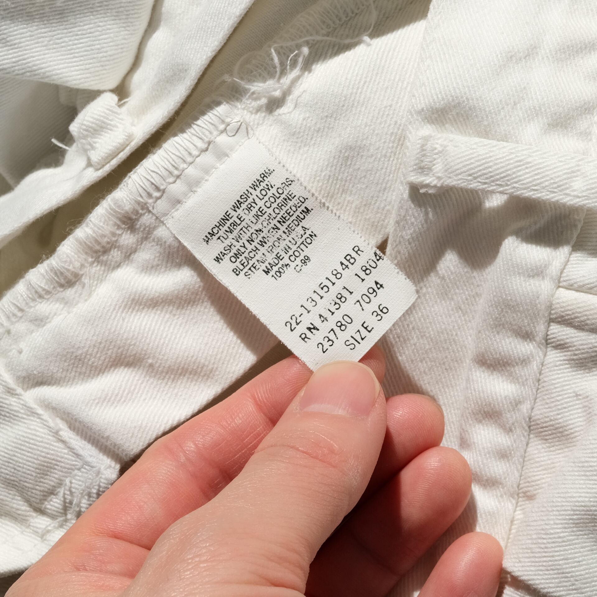 【状態】全体的に着用感、スレ。ところどころうっすらとヨゴレ。フロントに若干の色移り。年代、ホワイトのカラーを考慮しますとコンディションは良い方かと思われます。目立つ大きなダメージやヨゴレなど見当たりません。