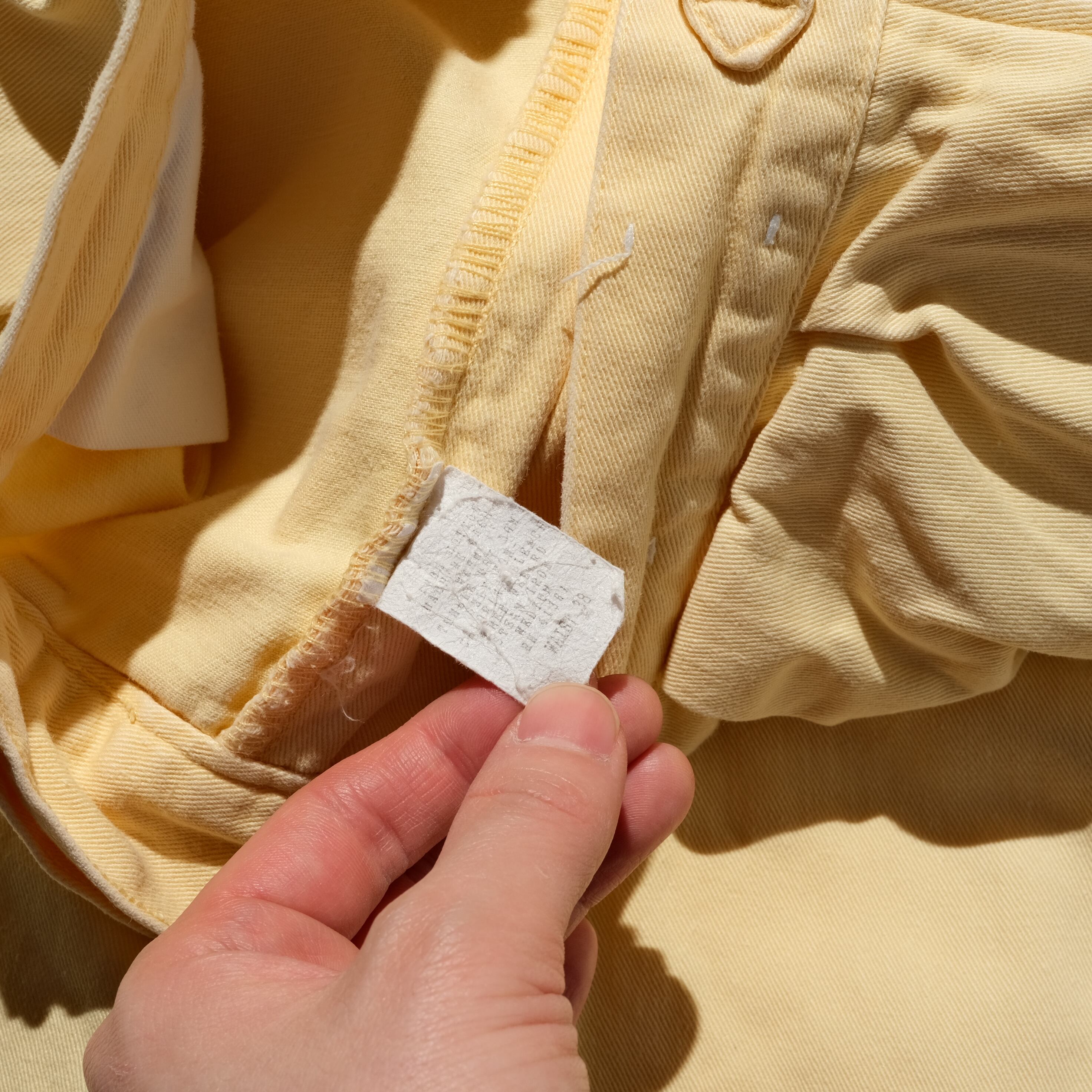 ベルトループのつかない仕様ですがサイドアジャスターを使用して1~2インチほどウエストを調整できます。夏には意外とシックにまとまるこの薄いレモンイエローのカラー。洒落たカラーかなと思います。