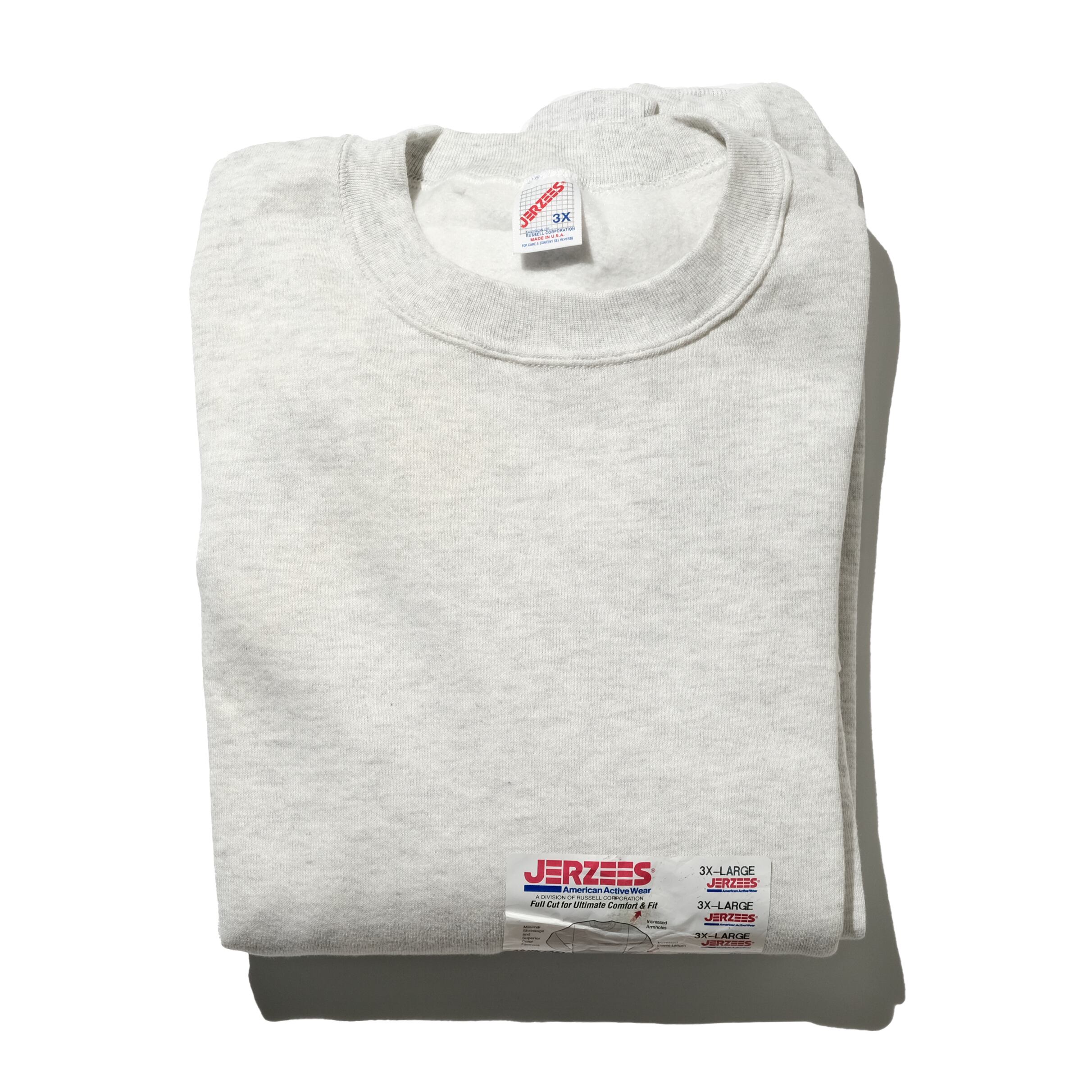 当店でも定番的に取り扱っております、JERZEESのプレーンスウェット。XL以上の身幅を広く着られるシルエット、そして何にでも合わせやすい無地のタイプは汎用性が高く人気ですね。