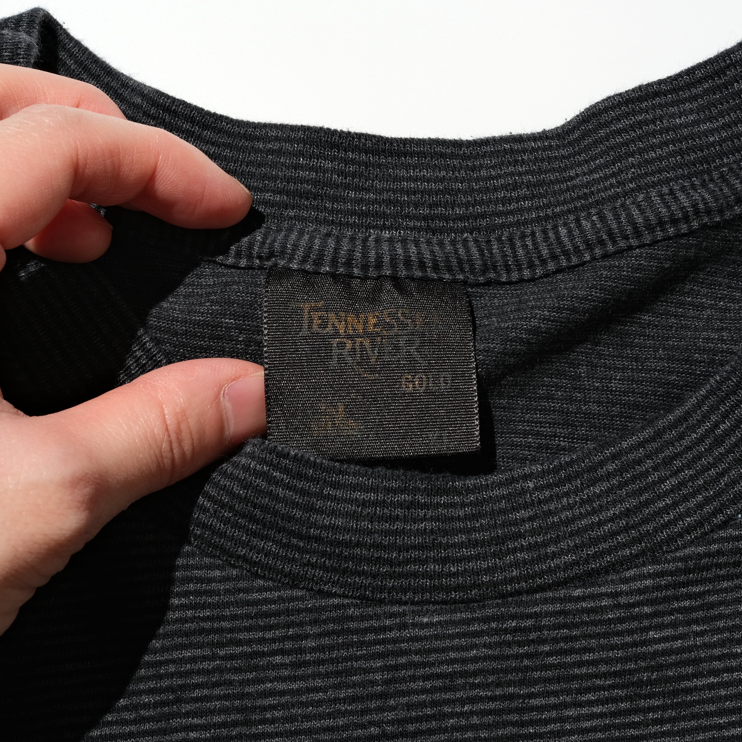 ボディも珍しいTennessee river goldのボーダー、しかもブラック×グレーの好配色と気の利いた一枚です。