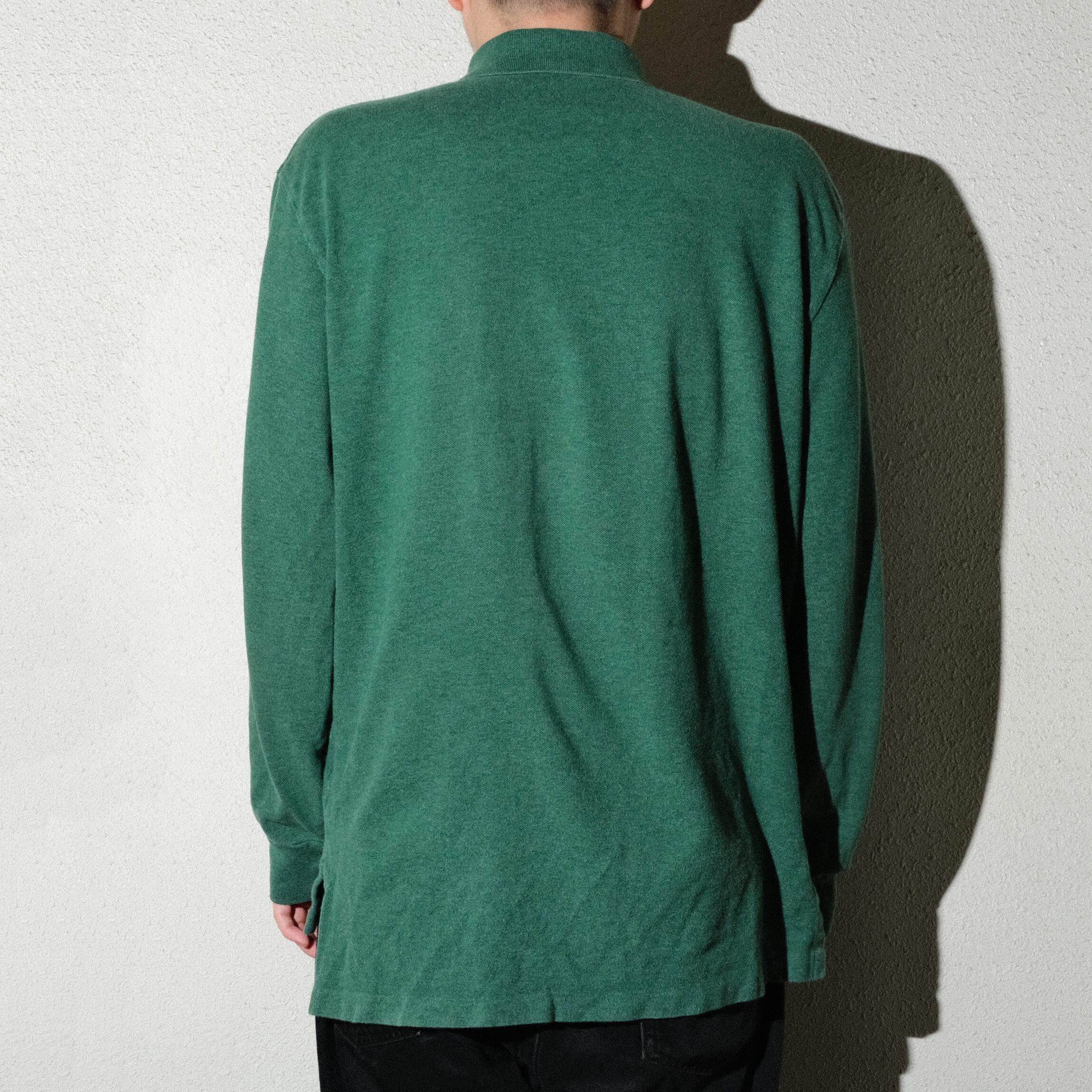 意外と見かけないフォレストグリーンのカラーの一枚。お好きな方も多いカラーではないでしょうか。夏に優秀な鹿の子素材、半袖にショーツではなくこういった長袖にショーツを合わせていただくのもアリなのではないでしょうか。