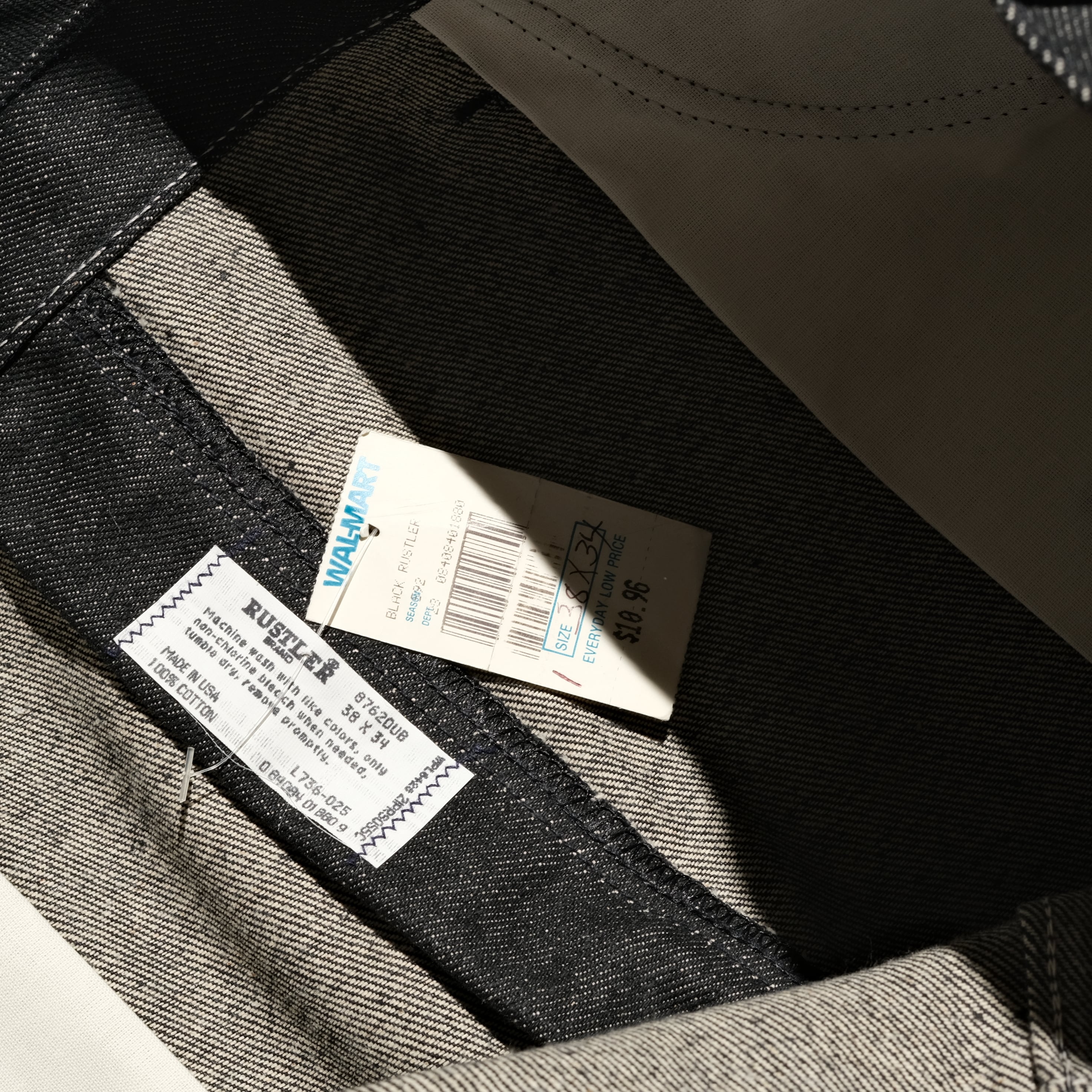こちらは90'sのUSA製の個体。当時ウォルマートで販売されていた値札のつくデッドストックコンディションの一本。このコンディションであれば裾上げをして着用されても違和感も出ません。リーバイスの先染めブラックとなると数倍の金額になってきますし、気軽に着用いただけるという意味でもおすすめです。