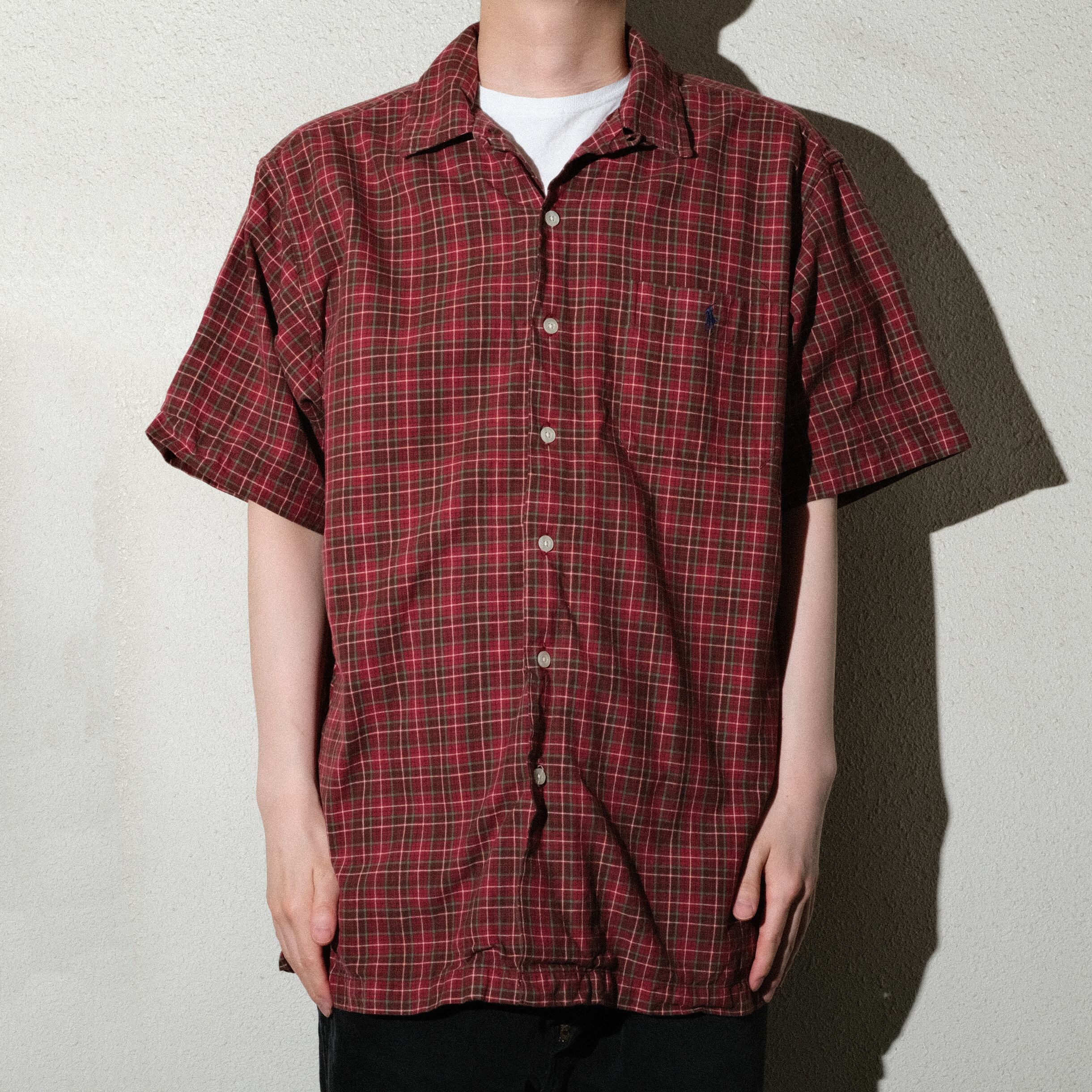 夏に目を惹くクールな赤ベースのカラー。おすすめできるショートスリーブシャツです。