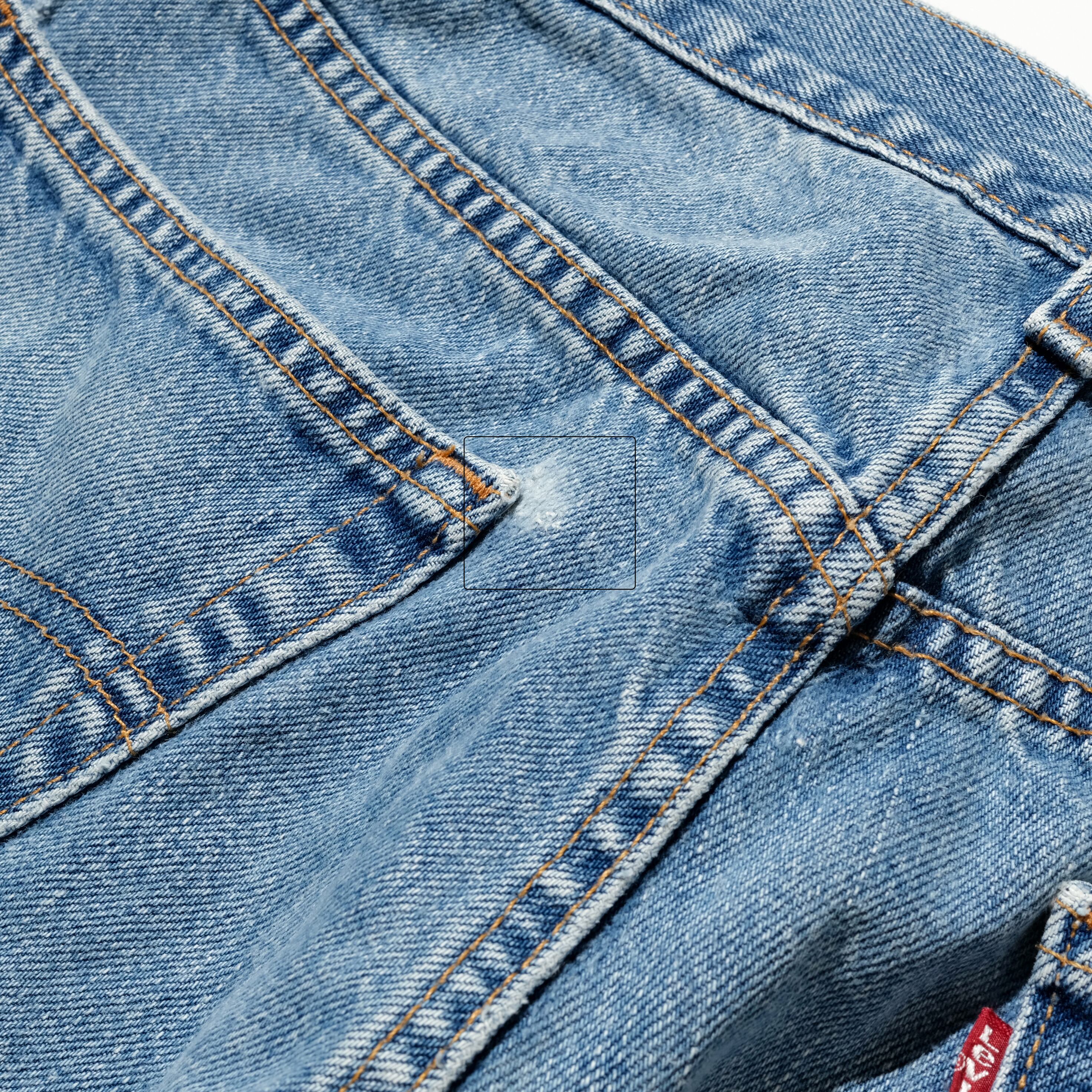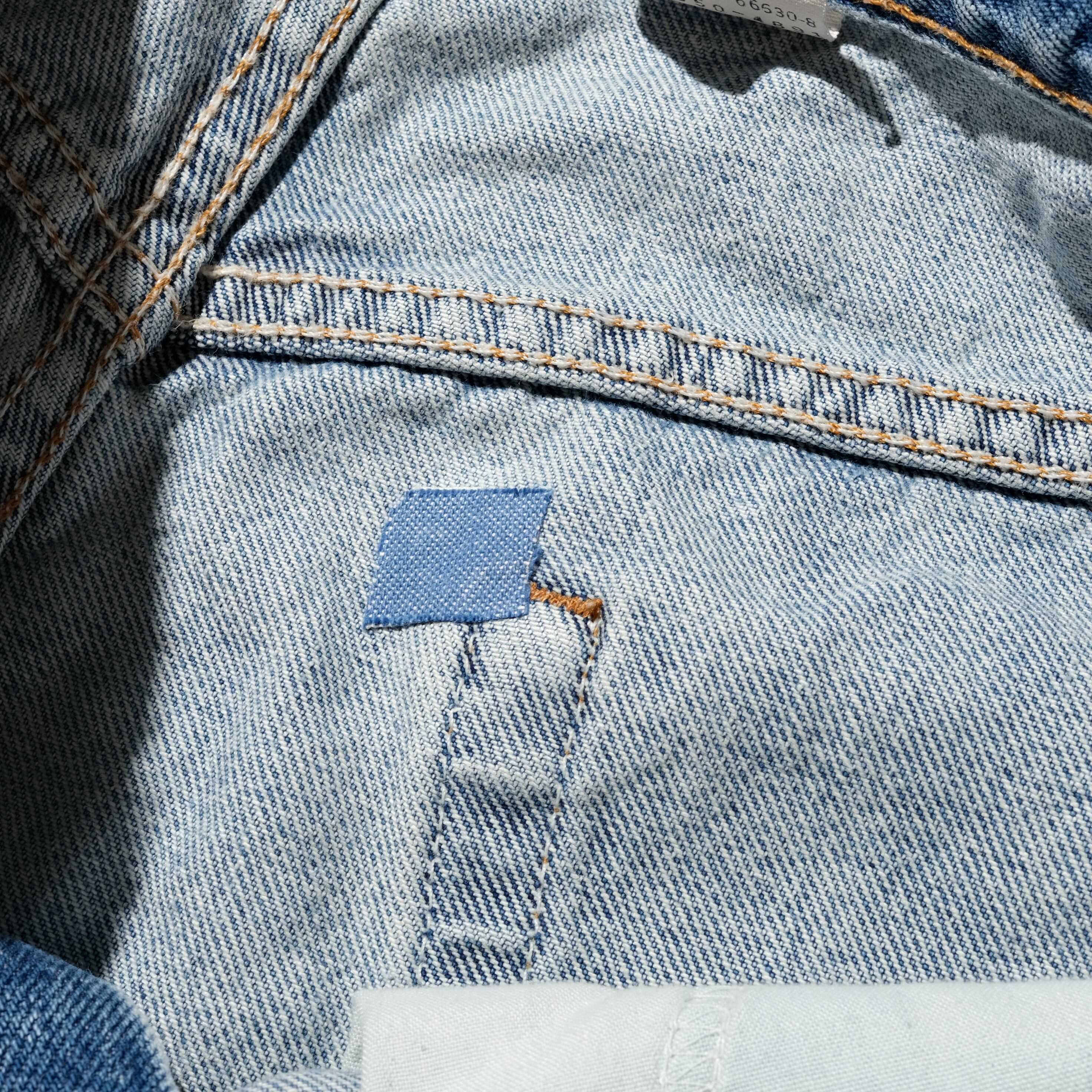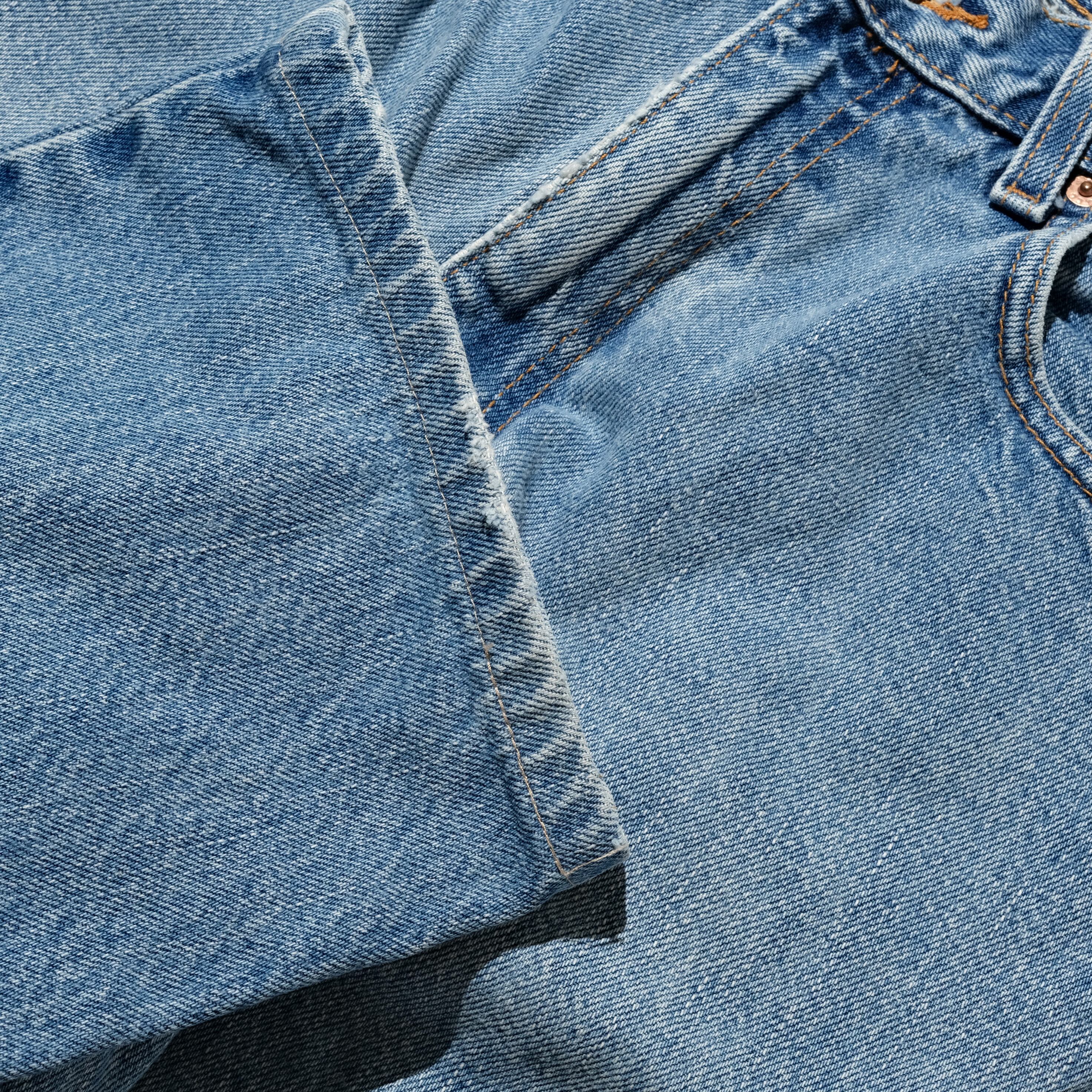 02年、メキシコ製の一本。ナチュラルなフェードにゴールデンな表記サイズが魅力の一本。1インチ程度裾上げされておりますが、おそらく当時行われた上げ方で裾のアタリもナチュラルです。